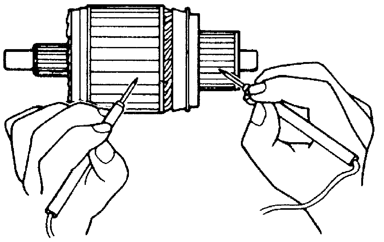 ^ Check the commutator and armature core. If there is continuity, the armature is grounded and must be replaced.