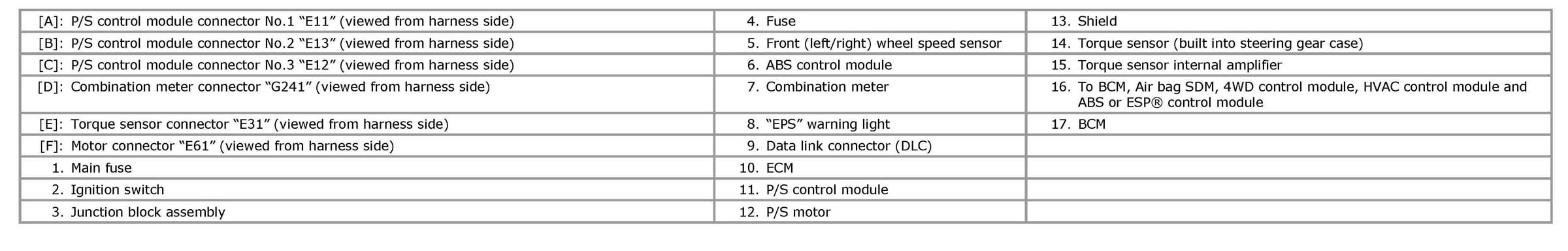 Terminal Arrangement of P/S Control Module Coupler (Viewed from Harness Side)