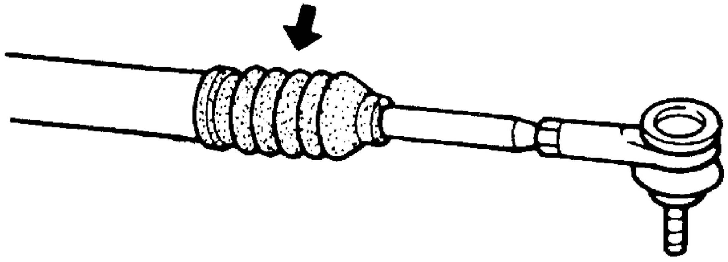 Steering Rack Boot Check^ Check boot for crack and damage which, if any, means possibility of rusty gear, entry of dust or lack of grease. Also, check if any of such faulty conditions exists.