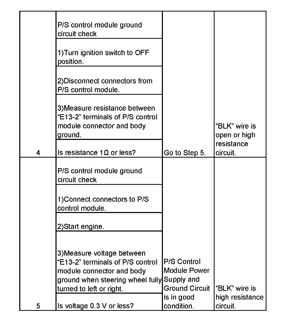 P/S Control Module Power Supply and Ground Circuit Check