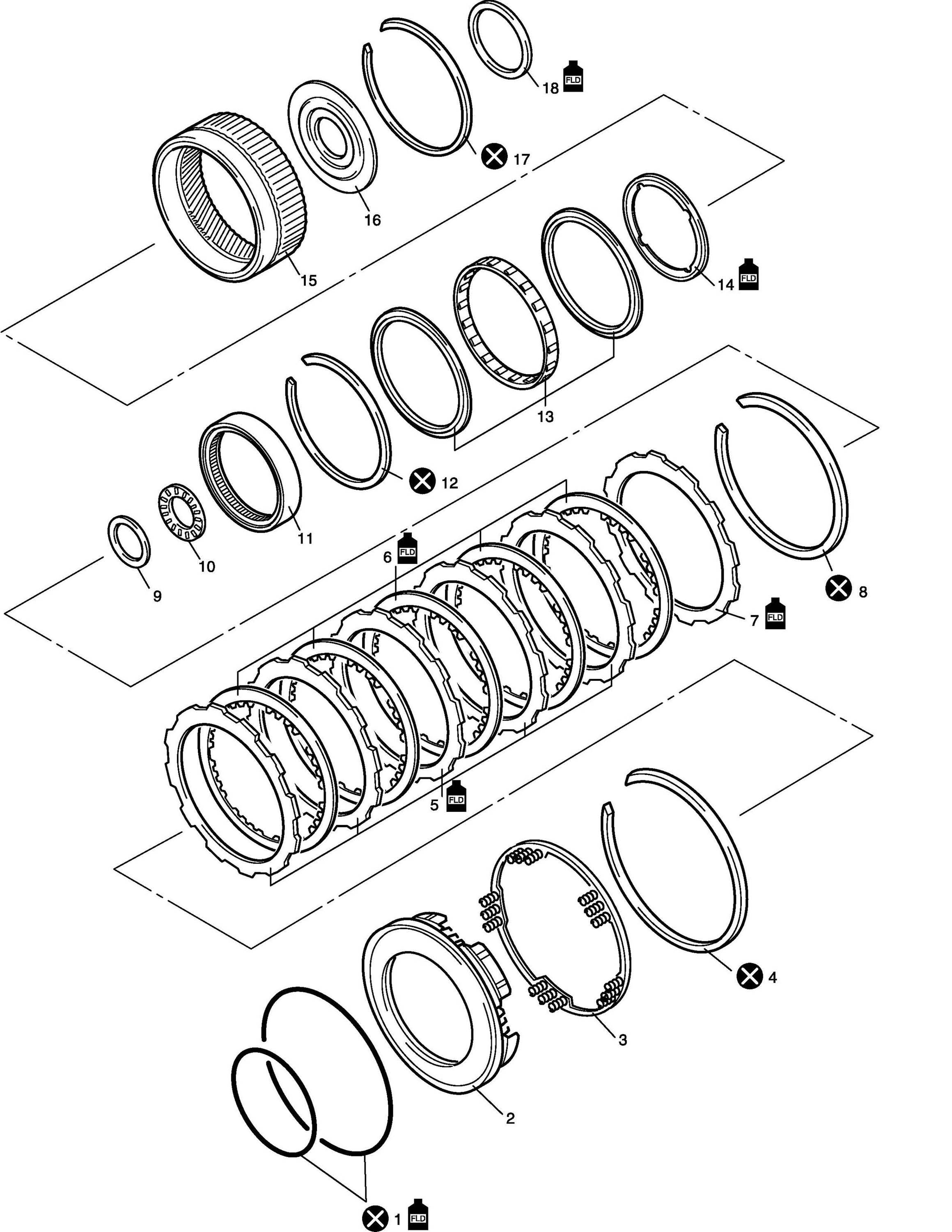 1ST / Reverse Brake and One-Way No. 2 Clutch Components