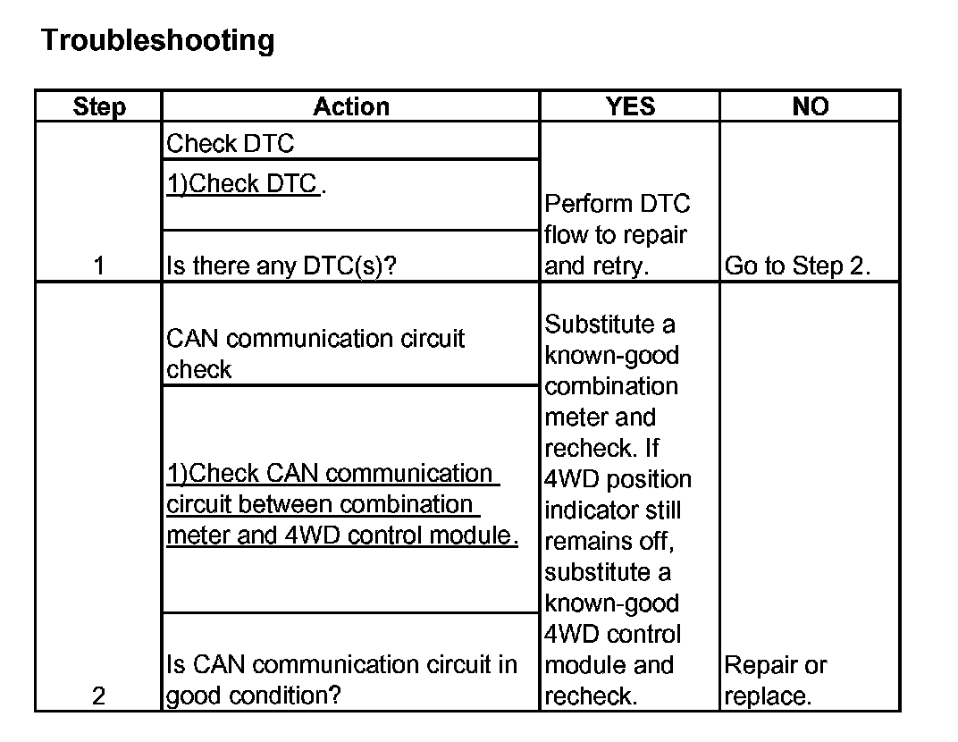 Refer to 4WD Position Indicator Does Not Come ON at Ignition Switch ON but Engine Stops.