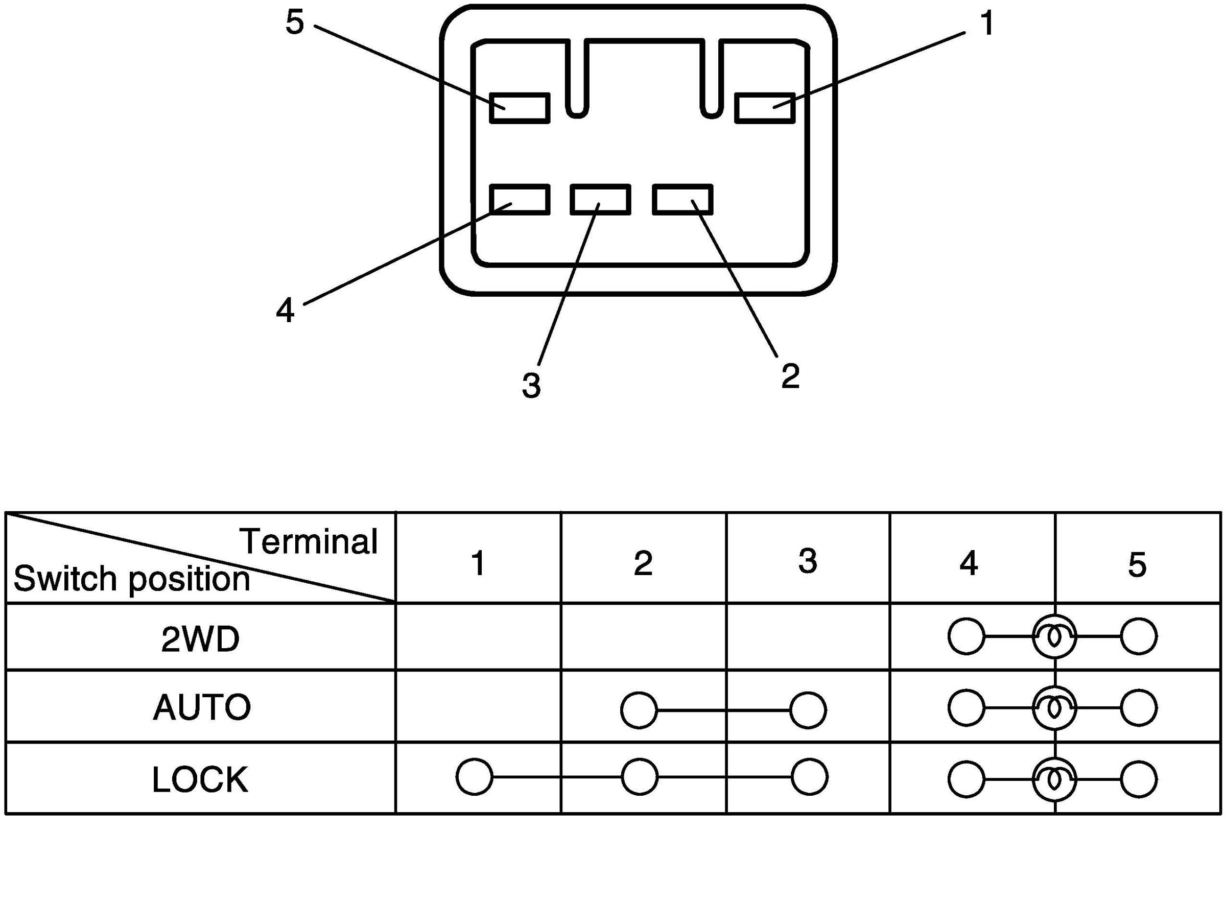 Check 2WD/4WD switch for continuity between terminals at each switch position.