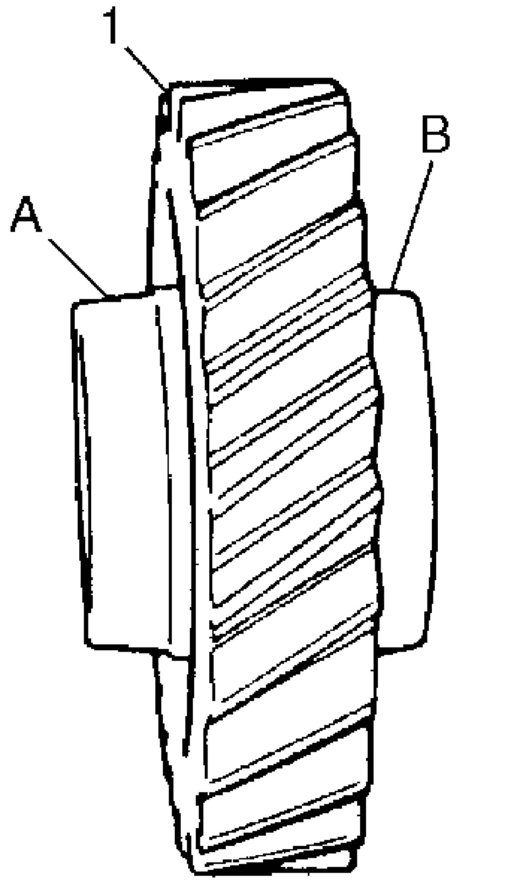 1. Install countershaft 5th gear (1) to countershaft facing machined boss "A" inward.