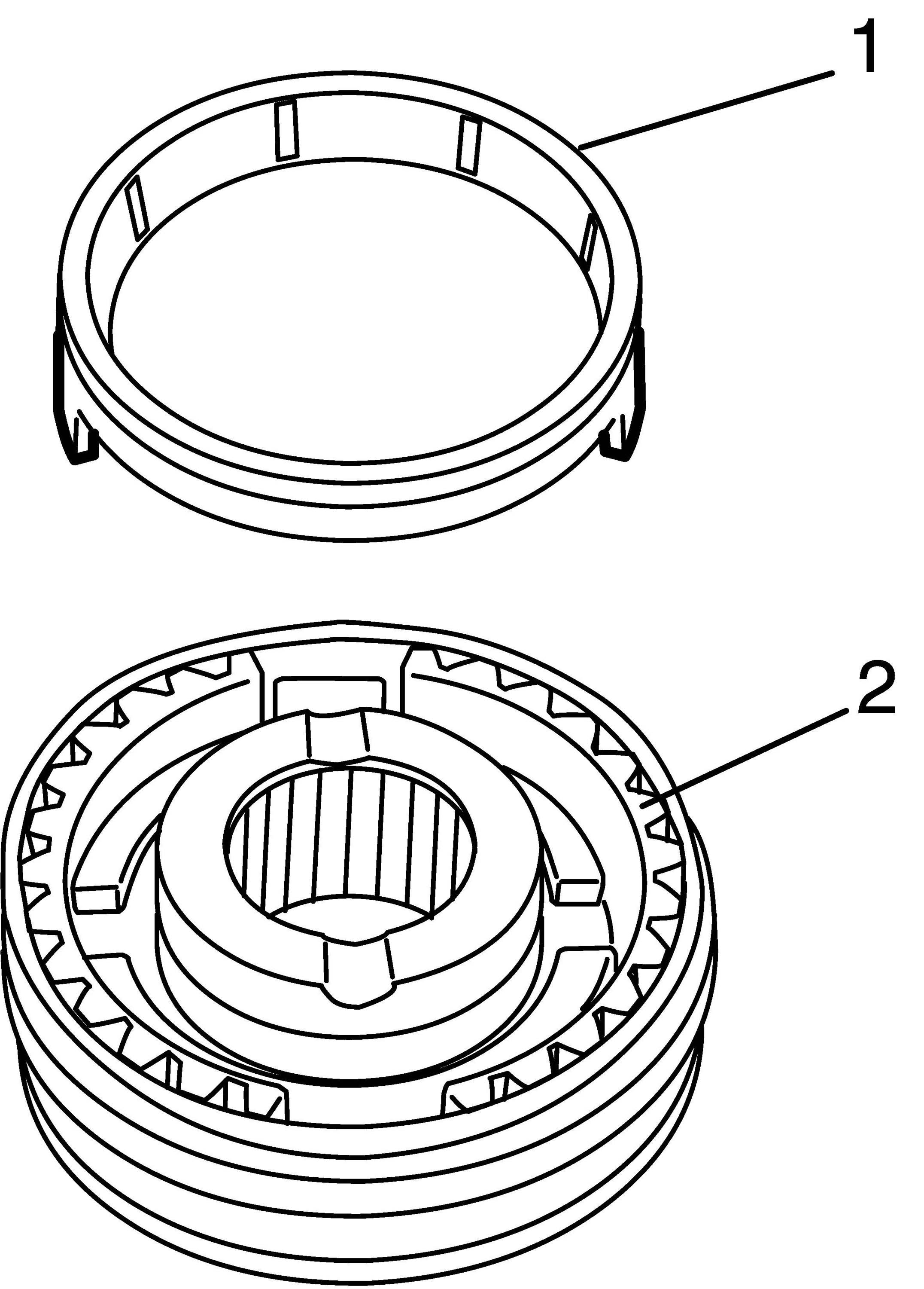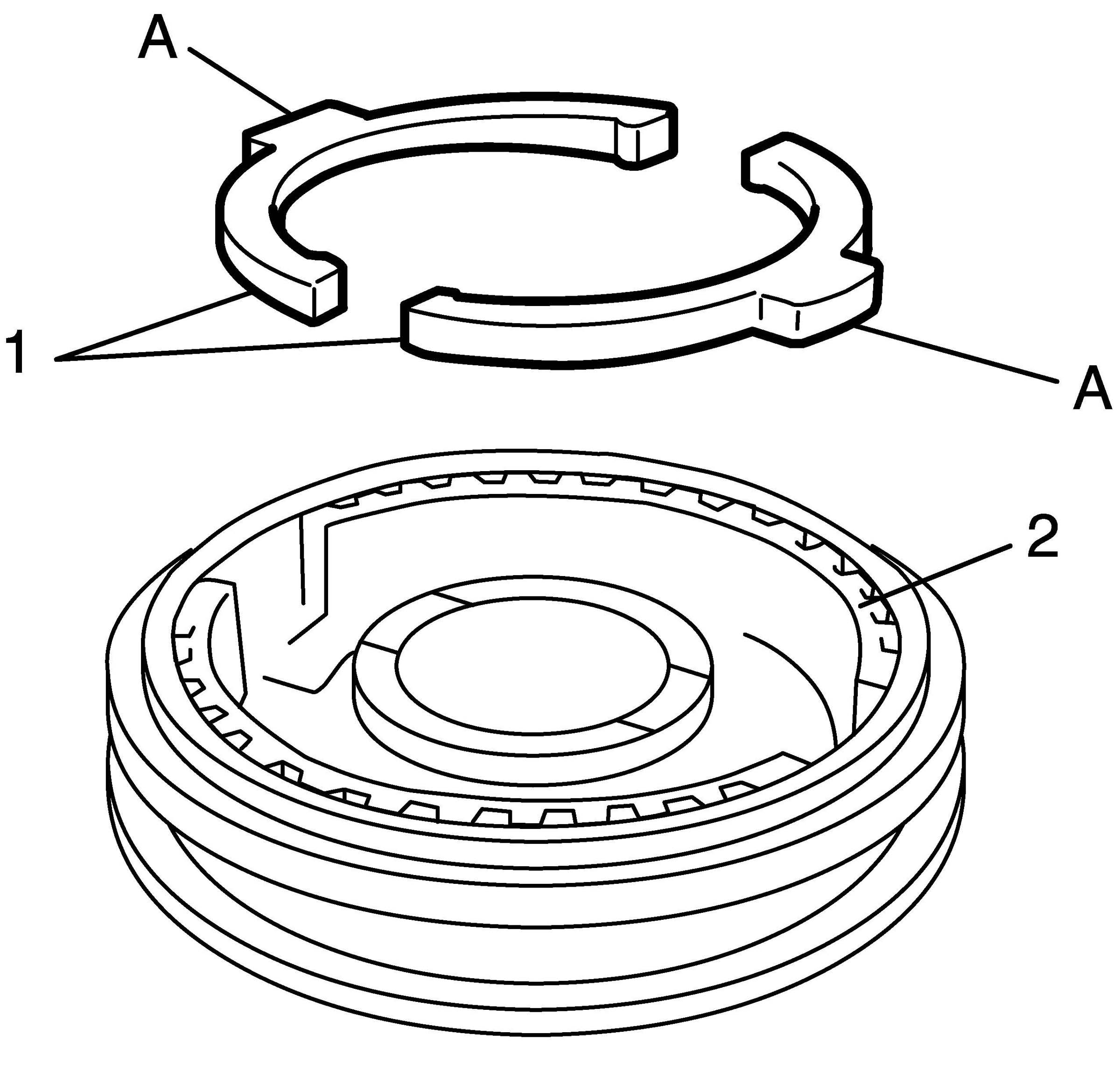 c) Install synchronizer ring (1) to hub (2) in specified direction as shown in figure.
