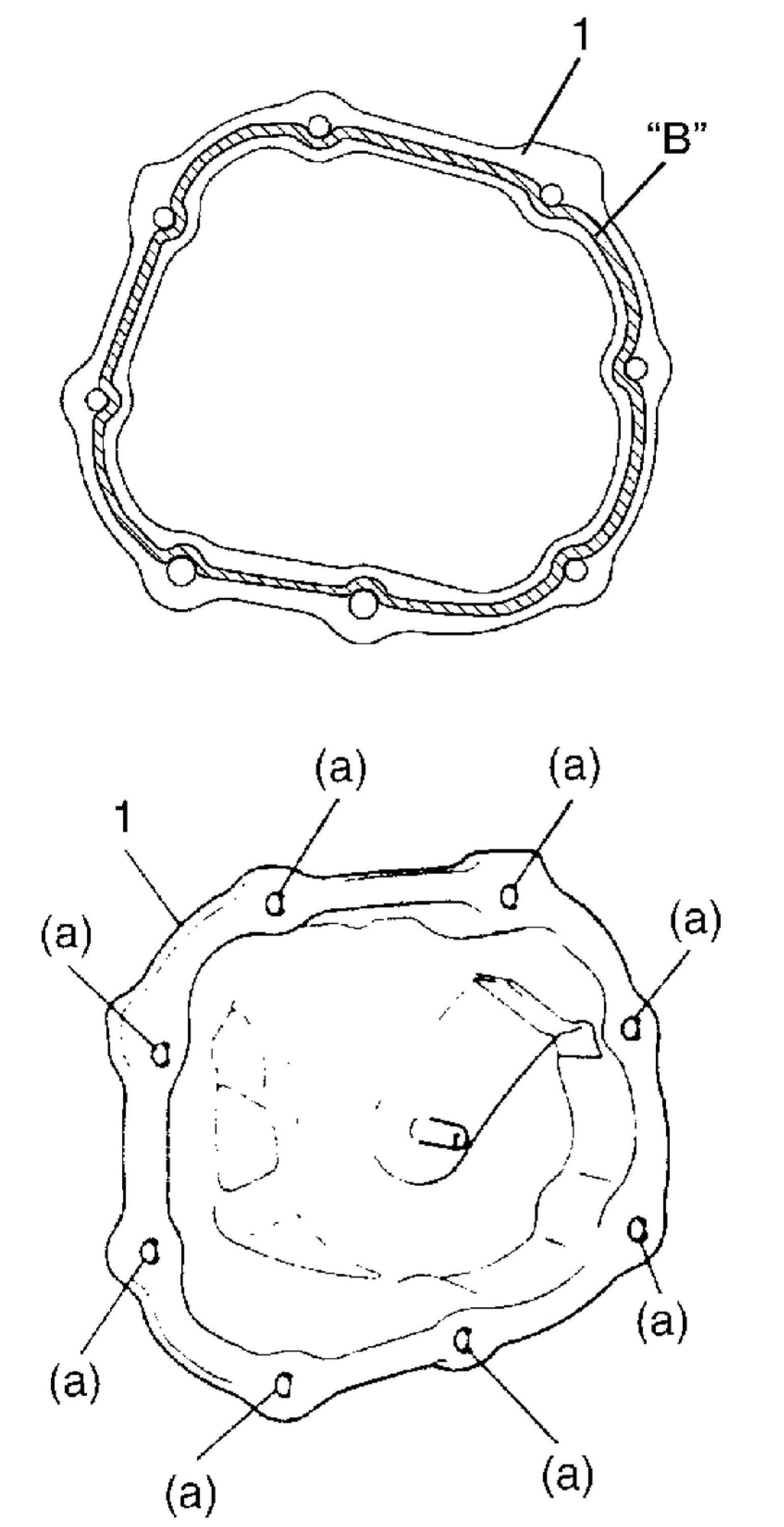 10. Clean mating surface of both left case and side cover (1), apply sealant to side cover as shown in figure by such amount that its section is 1.5 mm (0.059 in.) in diameter, mate it with left case, and then tighten side cover bolts with specified torque.