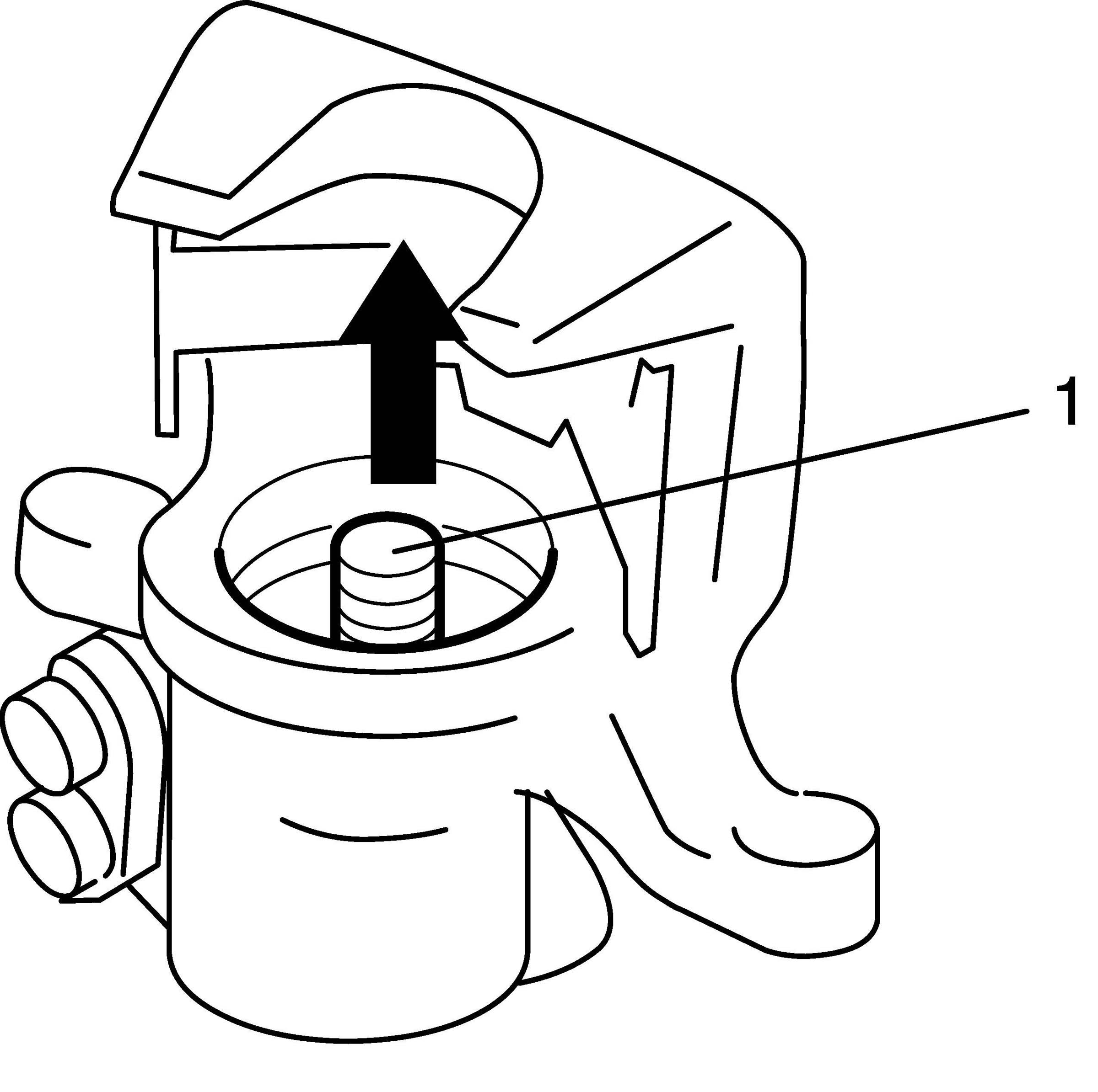 Push in adjusting bolt (1) by hand and move lever to check that adjusting bolt (1) moves smoothly in the arrow direction. Also, check adjusting bolt (1) for any damage. If it is found faulty, replace.