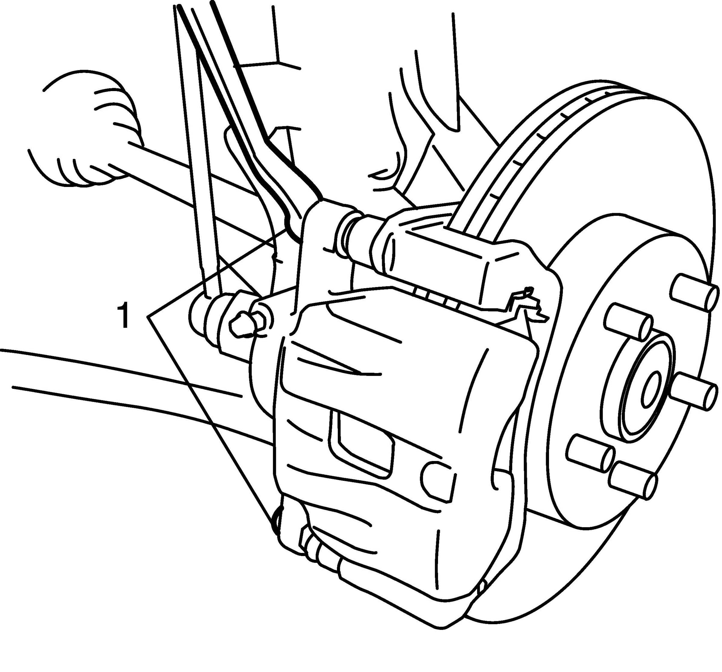 2. Remove caliper pin bolts (1).