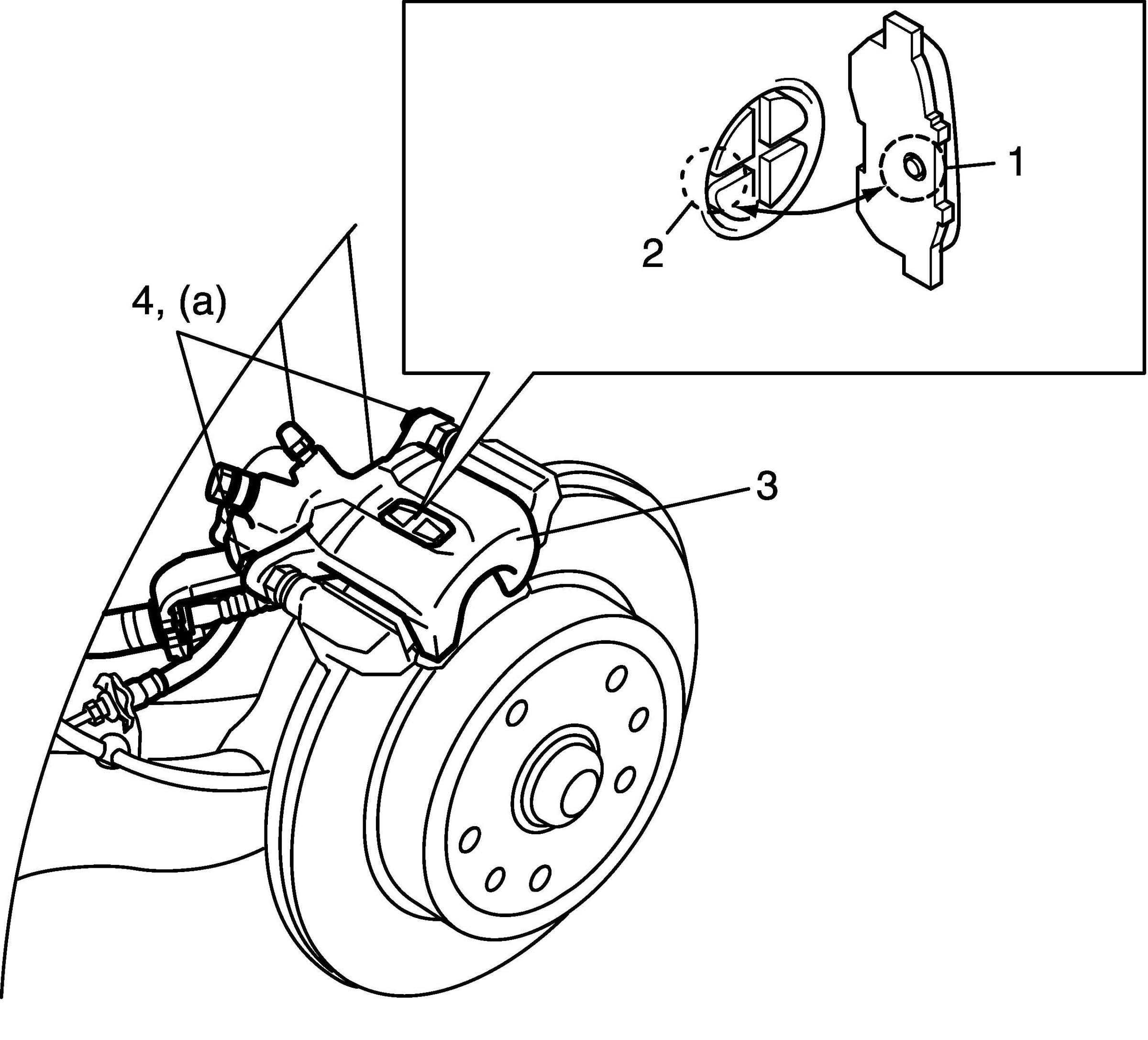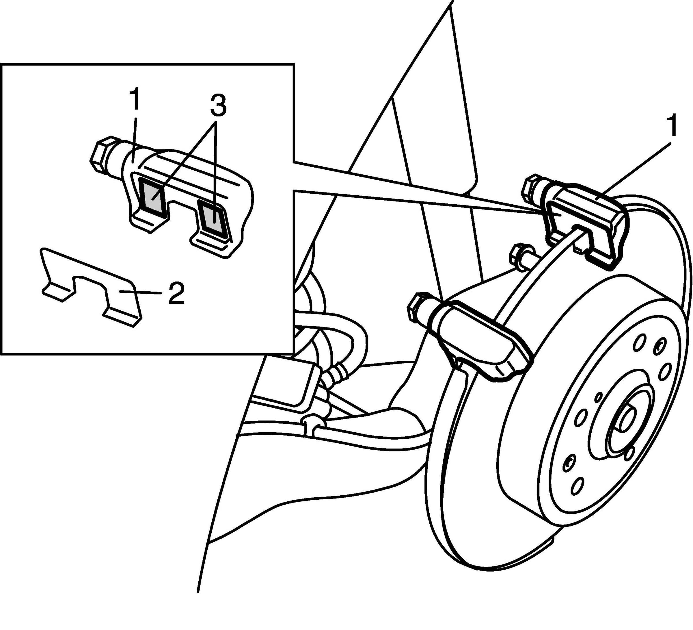 2. Clean (and degrease) pad spring installation face (3) of caliper carrier (1).