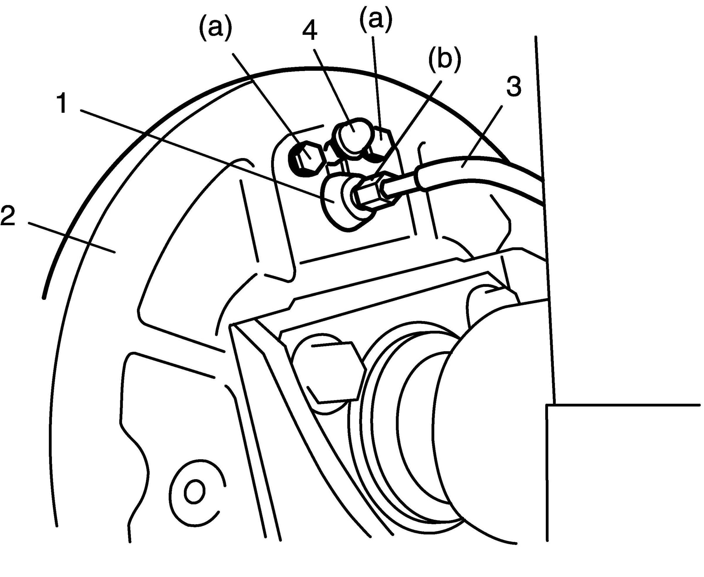 3. Loosen brake pipe flare nut (1) but only within the extent that fluid does not leak.