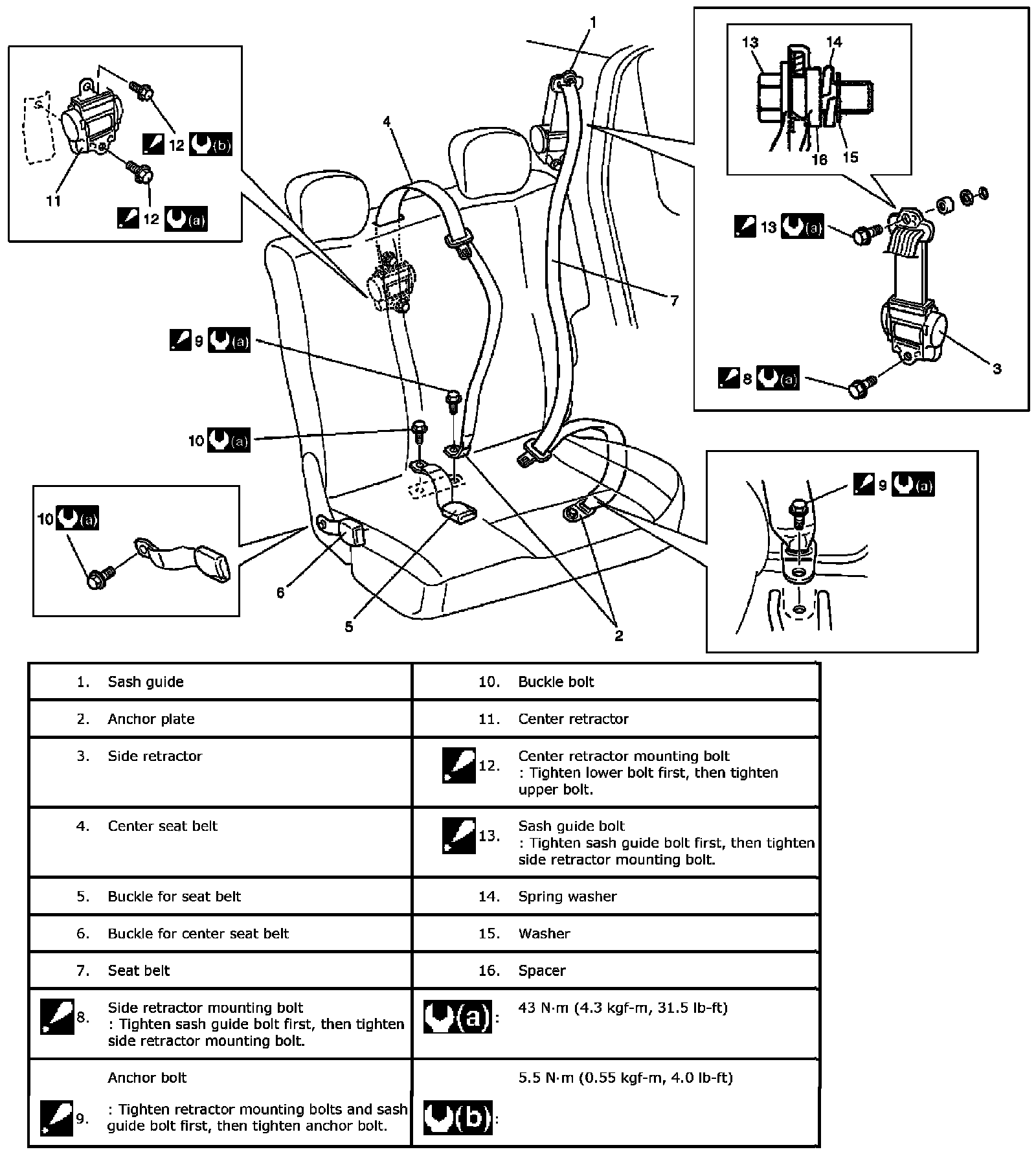 Rear Seat Belt Components: