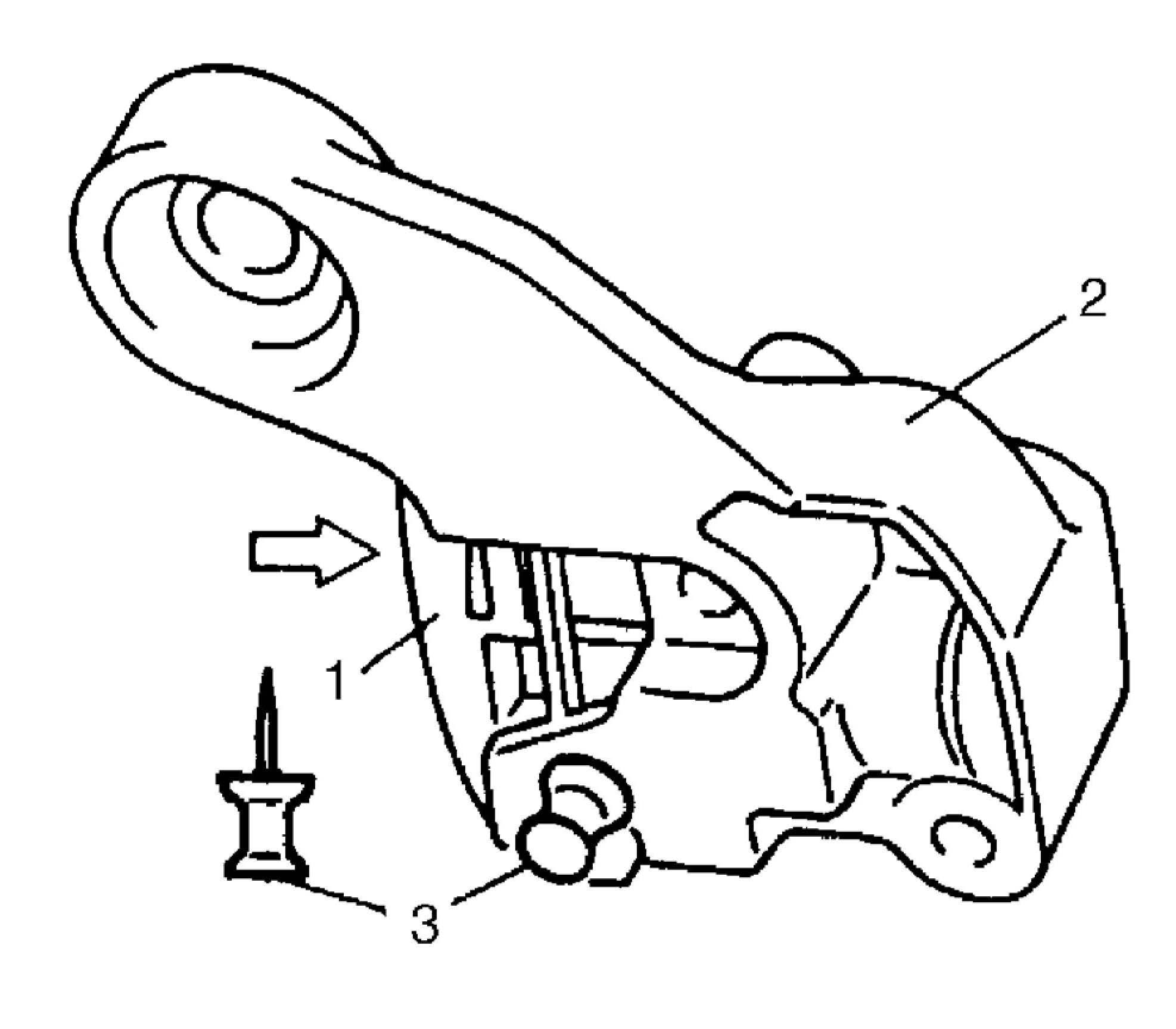 7. Push back plunger (1) into tensioner body (2), and hold it at the position by inserting stopper (3) into body.