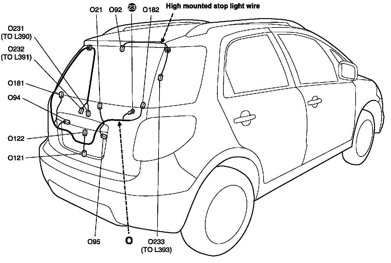 O: Rear End Door Harness, High Mounted Stop Light Wire View: