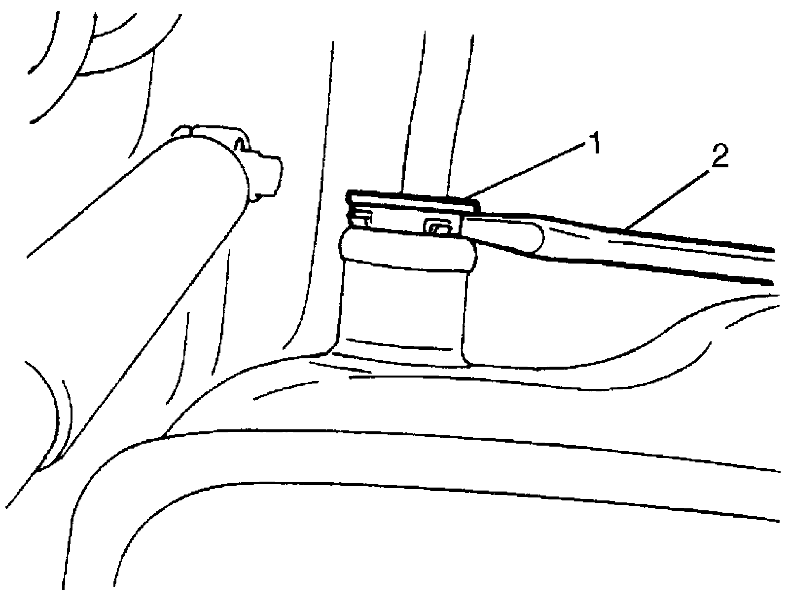 CAUTION: Be careful not to damage fuel tank inlet valve (1) with flat head rod (2) or the like.