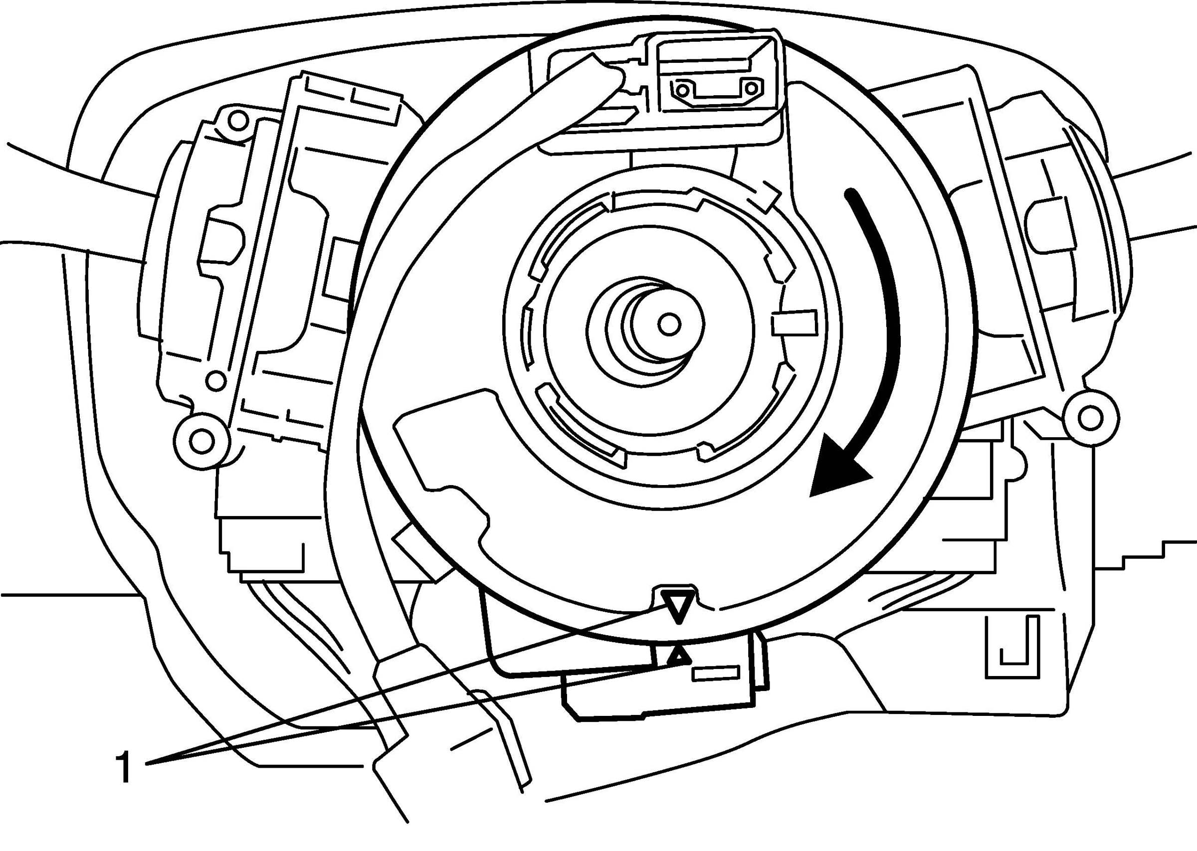 4. From the position where contact coil became unable to turn any further (it stopped), turn it back clockwise about two and a half rotations and align center mark with alignment mark (1).