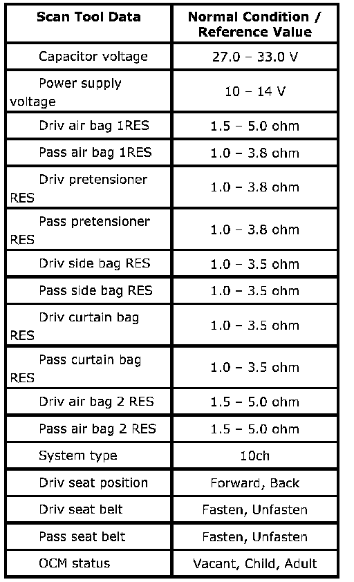 This parameter indicates the resistance of the passenger side-air bag initiator circuit.