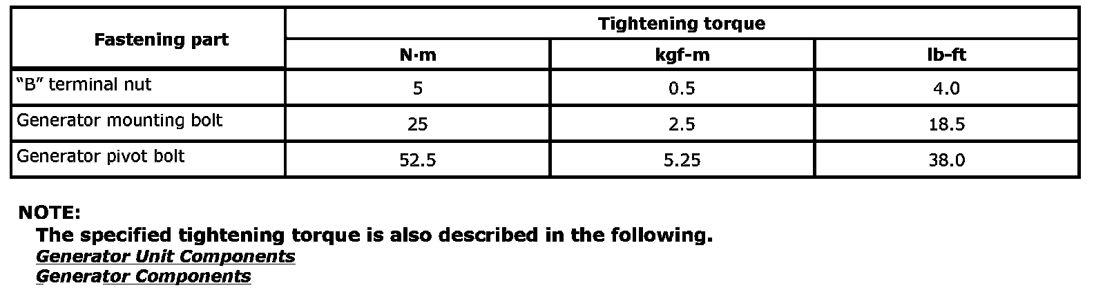 Tightening Torque Specifications: