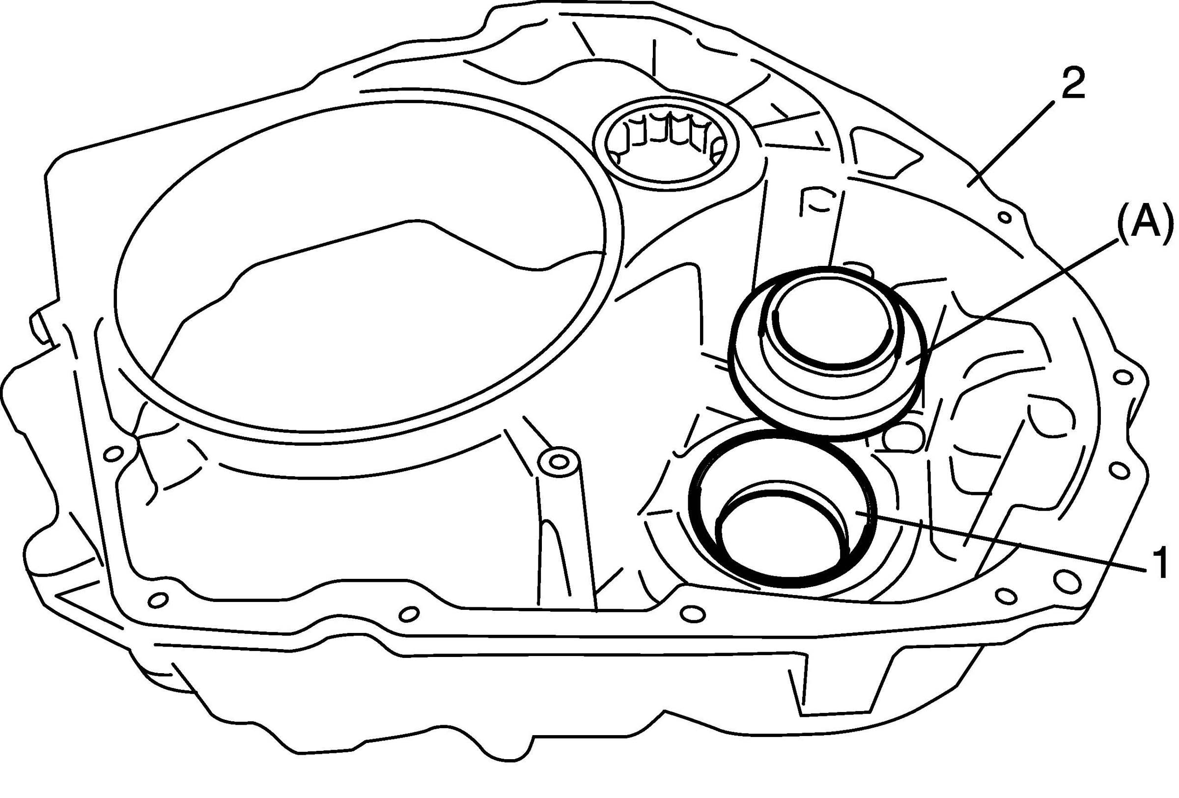 2. Install differential side left bearing race (1) to transaxle housing (2), using special tool.