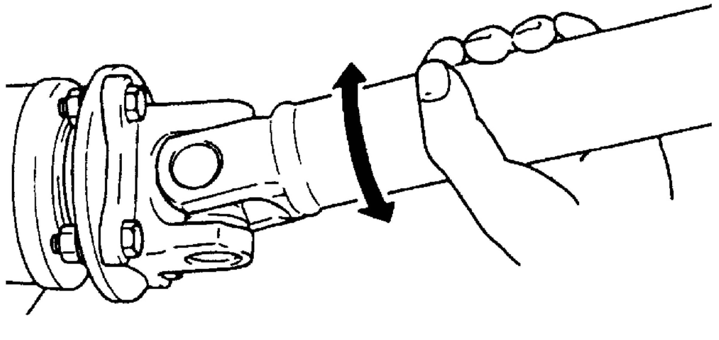Propeller Shaft Joint CheckIf universal joints and ball joint are suspected of producing chattering or rattling noise, inspect them for wear. For universal joint, check to see if cross spider rattles in yokes are worn down and replace defective propeller shaft assembly with new one.