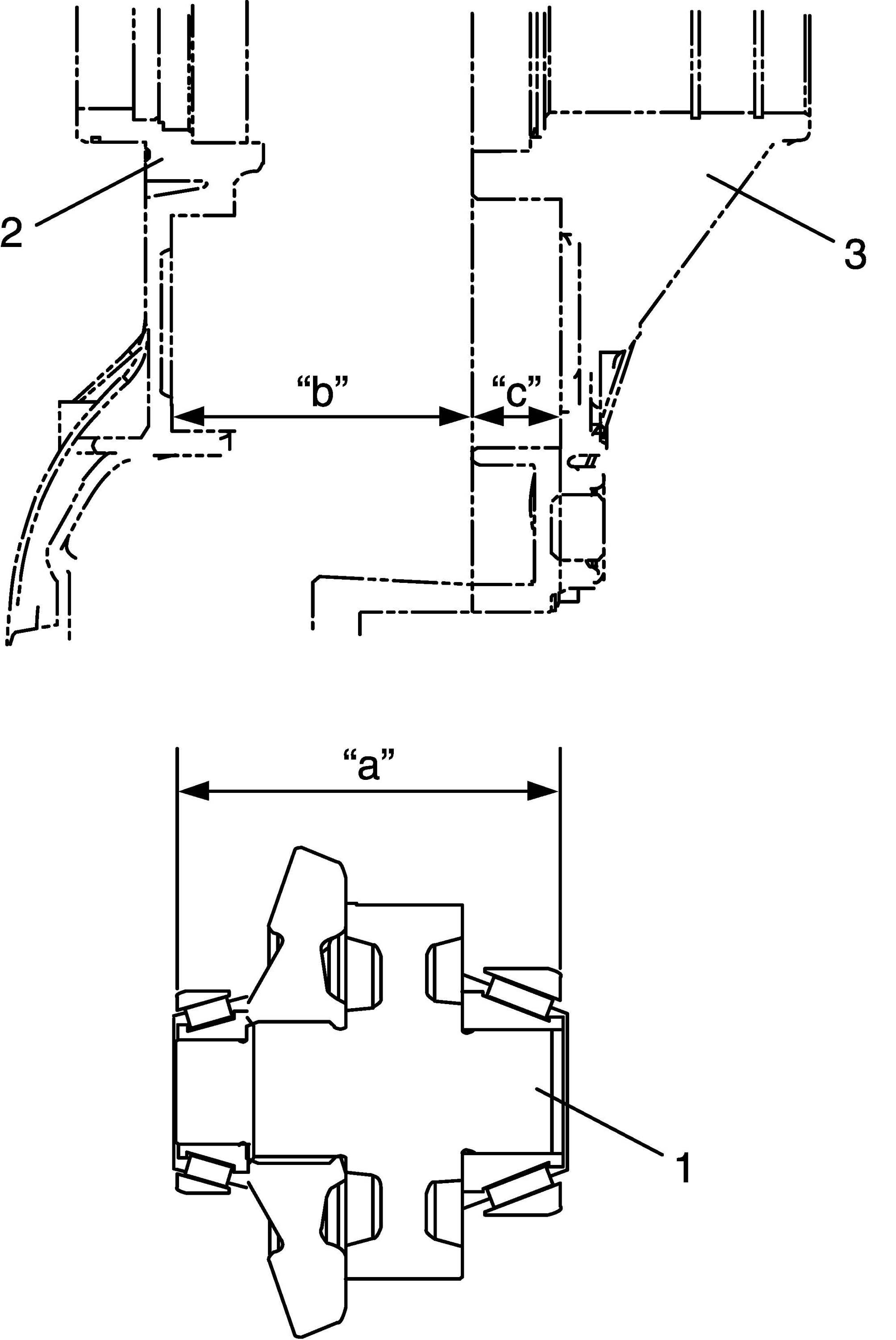 a) Measure distance "a" between taper roller bearing outer races of reduction driven gear assembly (1).