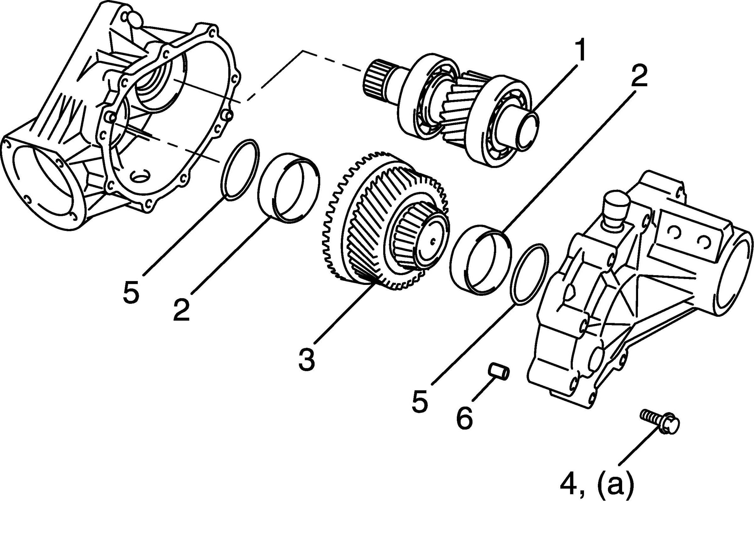 3. Remove intermediate shaft (4) with intermediate shaft bearing (3) from transfer assembly.