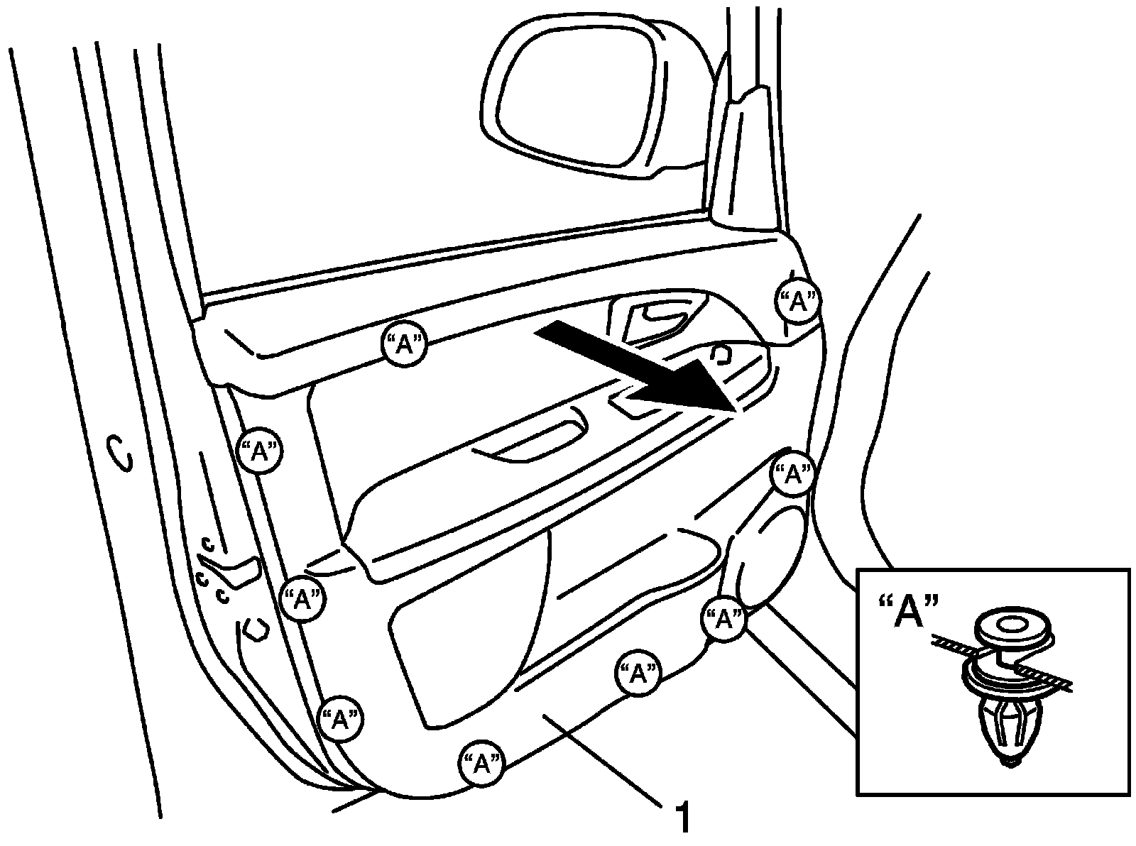 3. Remove door trim (1) as shown.