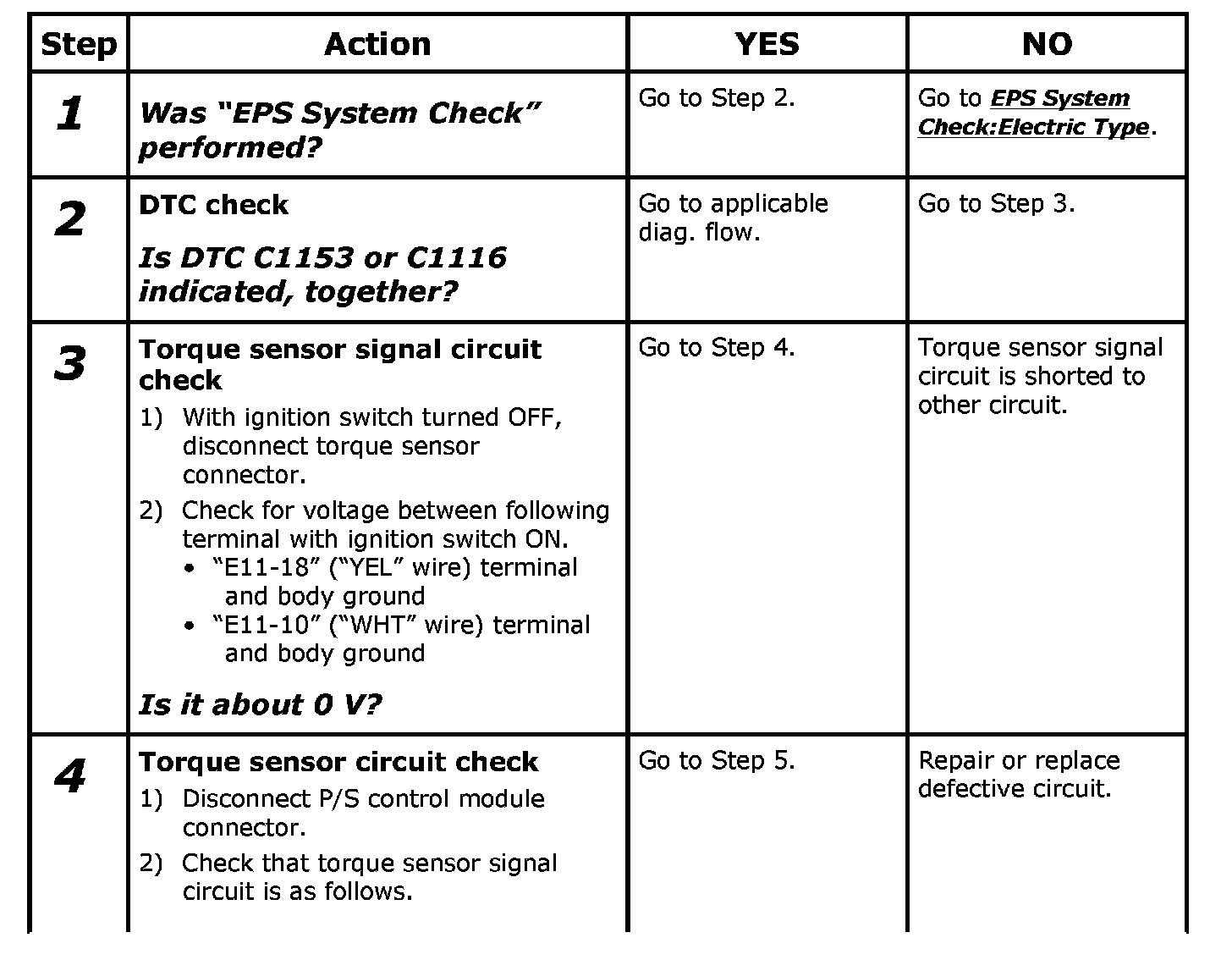 DTC C1111 / C1113 / C1115: Torque Sensor Circuit Failure(DTC C1111: Steering Torque Sensor (Main) Circuit Voltage)