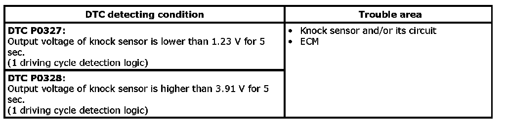 DTC P0327 / P0328: Knock Sensor Circuit Low / HighWiring Diagram