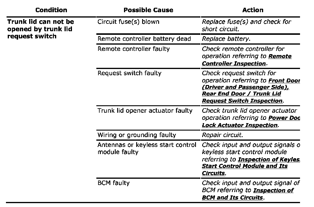 Trunk Lid Opener Function of Keyless Start System (Sedan)