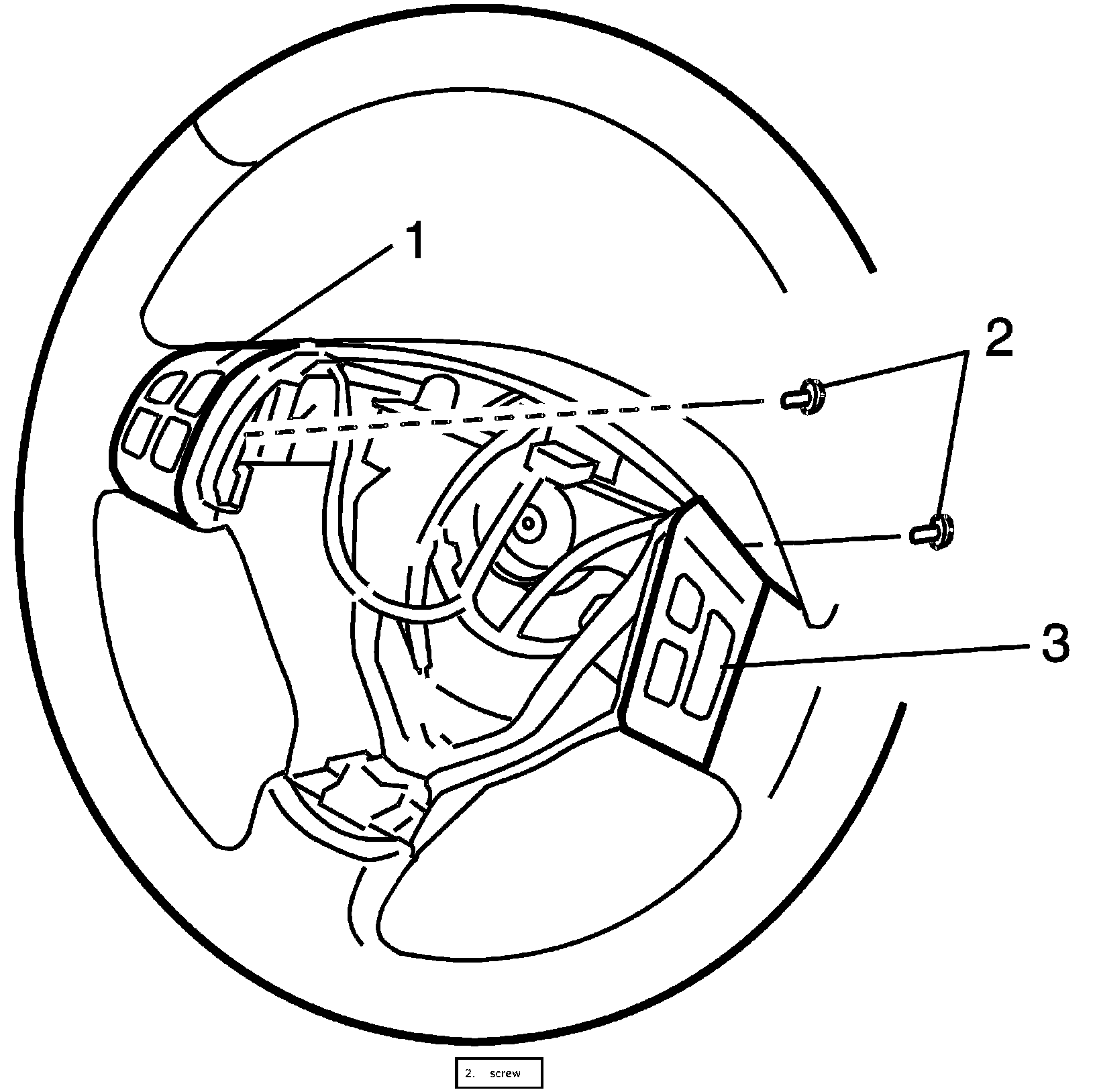 2. Remove steering wheel cover (1) from steering wheel.