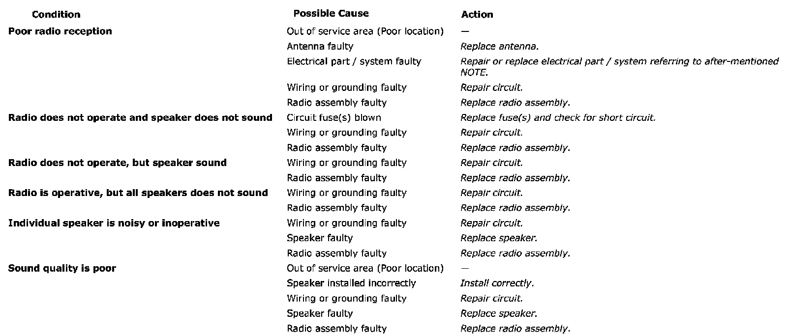 AUDIO SYSTEM SYMPTOM DIAGNOSIS (IF EQUIPPED)Radio