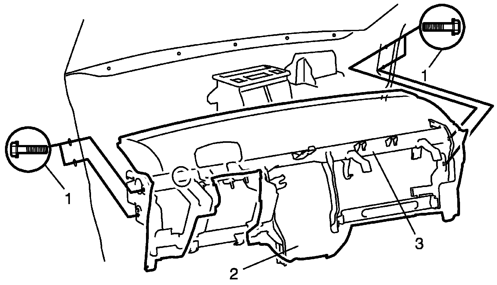 14. Remove instrument panel mounting bolts (1).