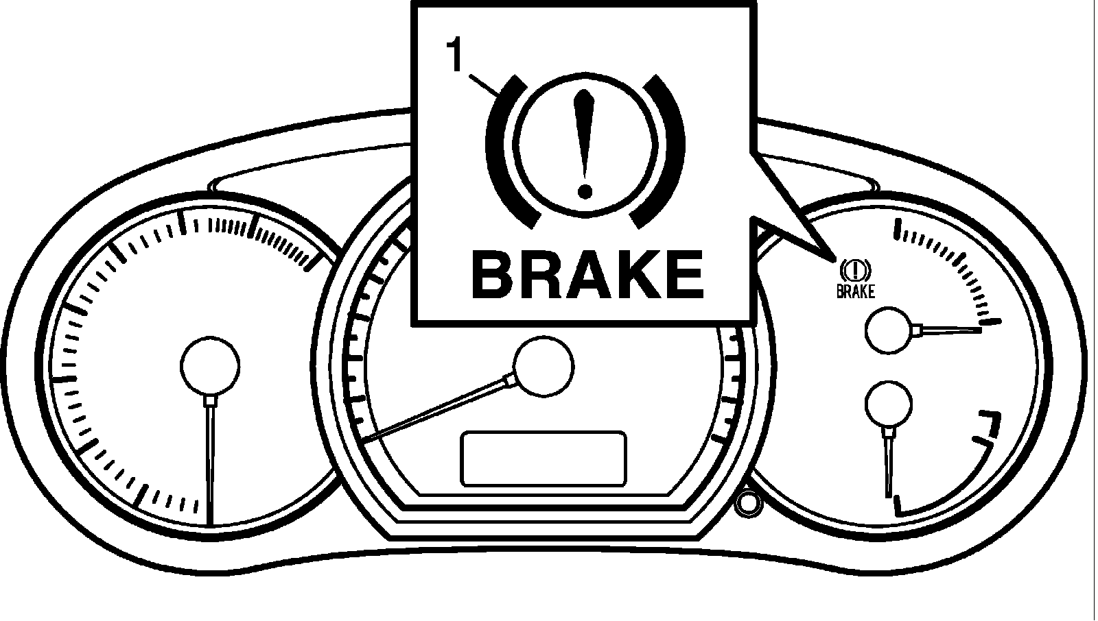 2. Check that EBD warning light (brake warning light) (1) is turned ON.