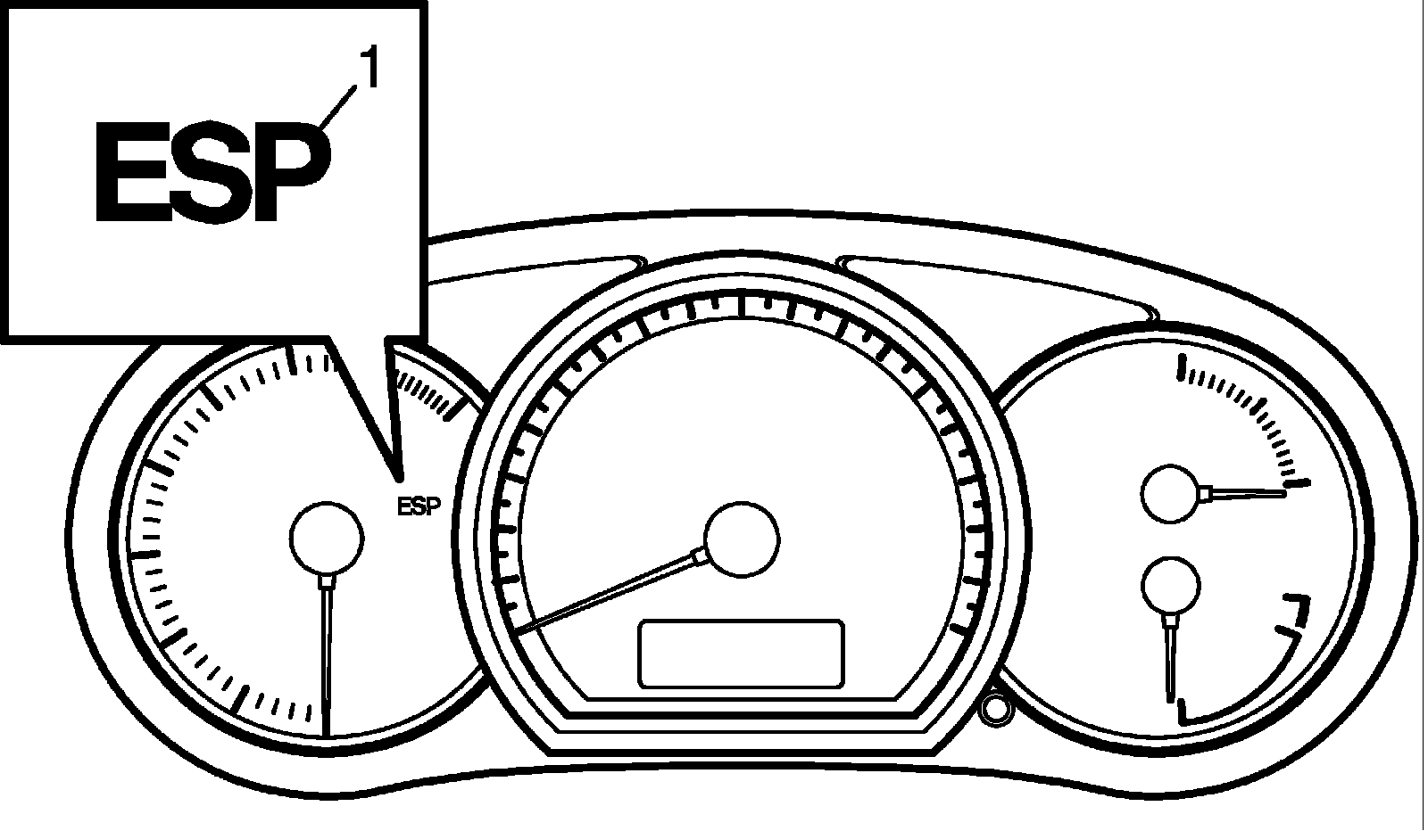 2. Check that ESP(R) warning light (1) comes ON for about 2 seconds and then goes off. If any faulty condition is found, advance to ESP(R) Warning Light Does Not Come ON at Ignition Switch ON or ESP(R) Warning Light Comes ON Steady.