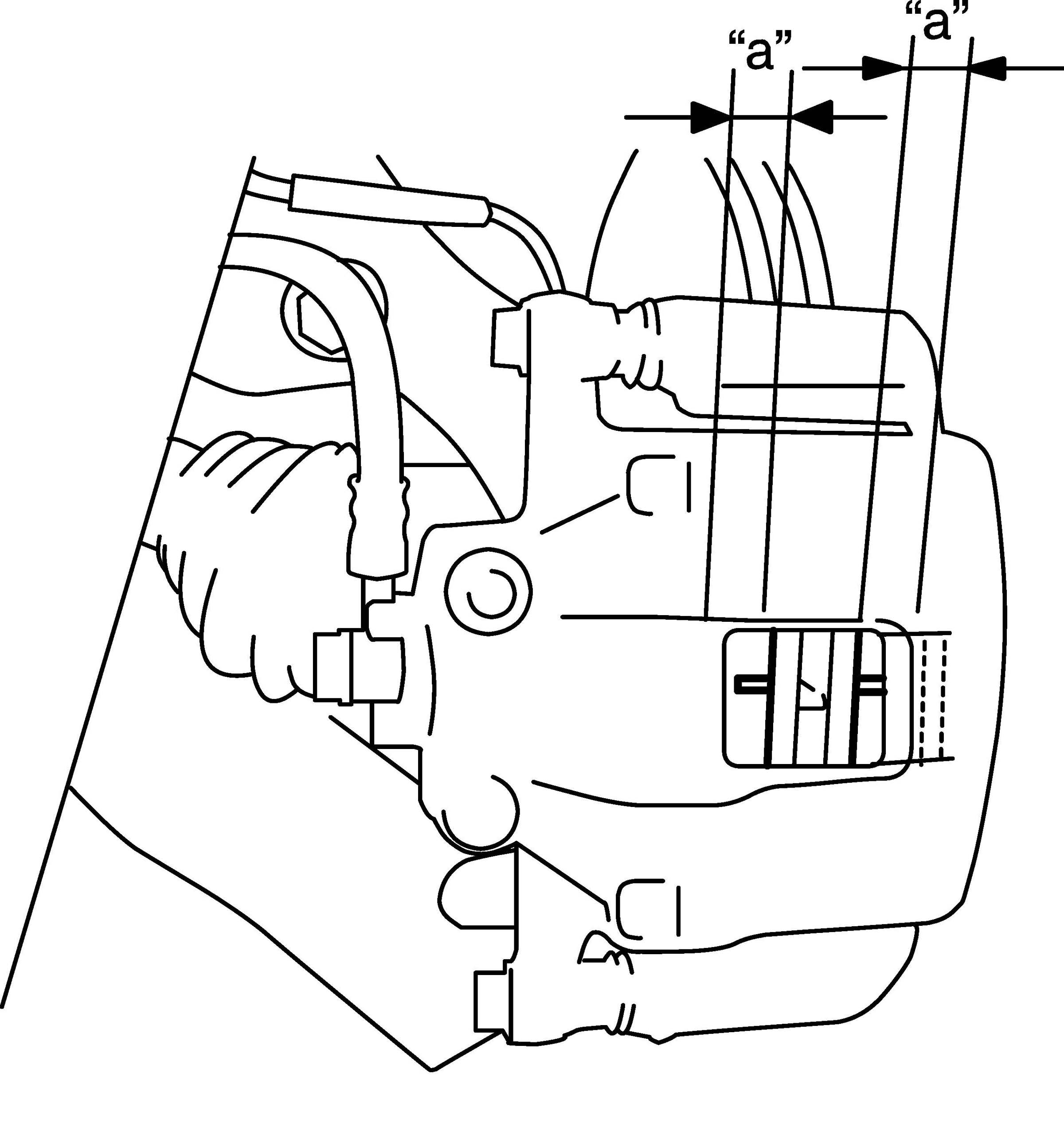 Front Disc Brake Pad On-Vehicle InspectionInspect pad linings (1) periodically according to maintenance schedule whenever wheels are removed (for tire rotation or other reason). Take a look through each end and inspection hole of caliper and check lining thickness of outside and inside pads. If lining is worn and its thickness ("a" in figure) is less than limit, all pads must be replaced at the same time.