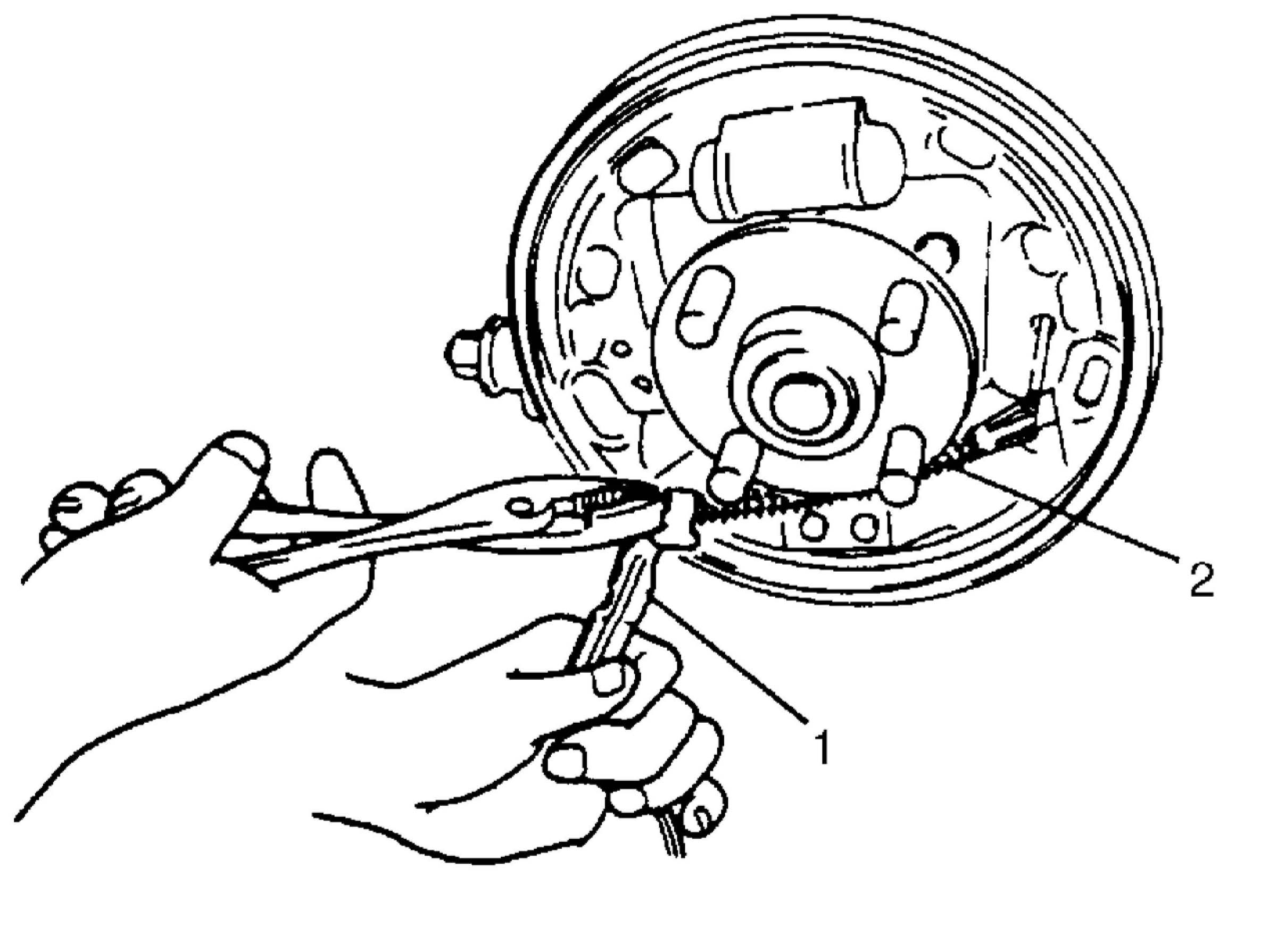 4. Disconnect parking brake shoe lever (1) from parking brake cable (2).