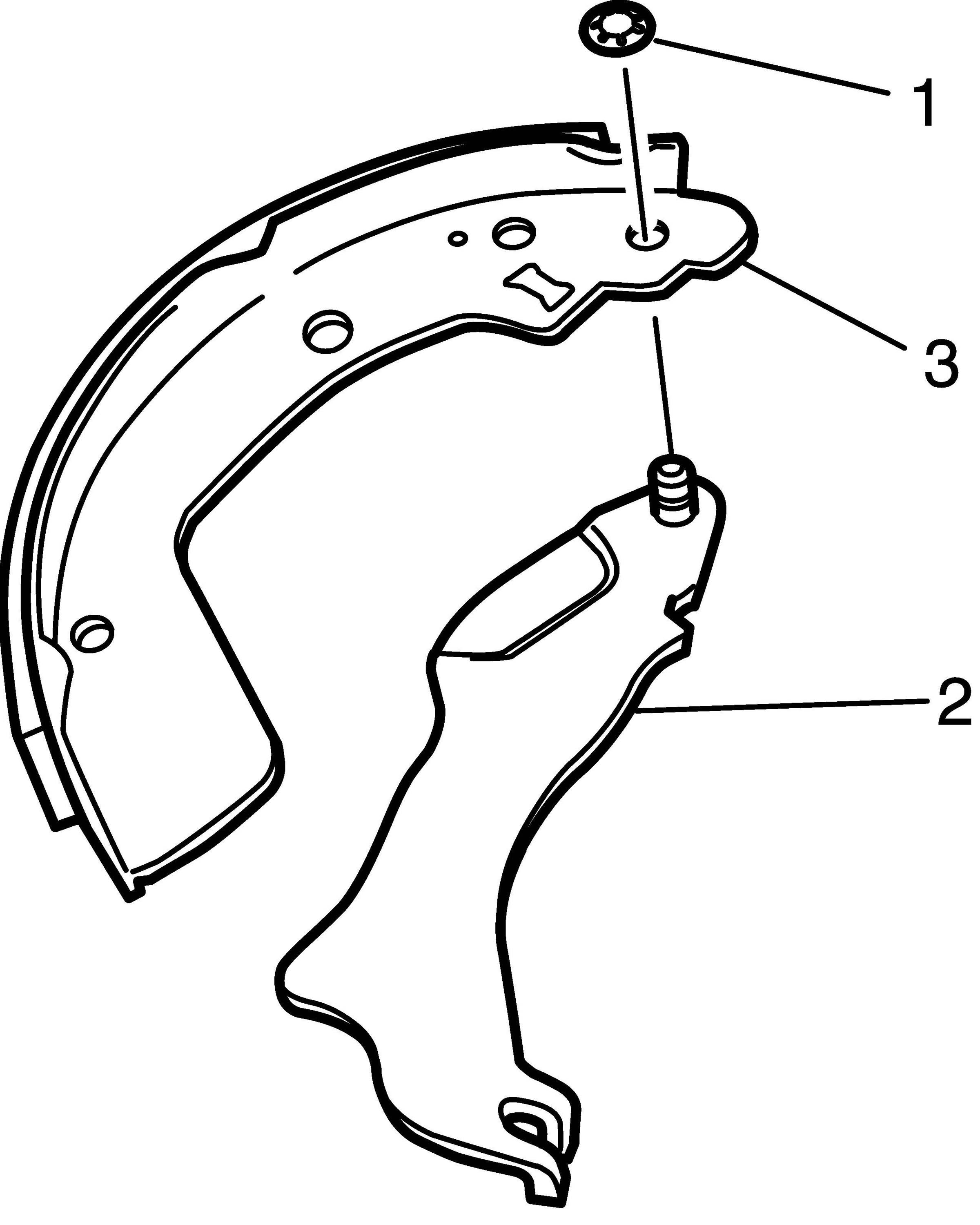 6. Remove parking brake shoe lever (2) from shoe rim (3).