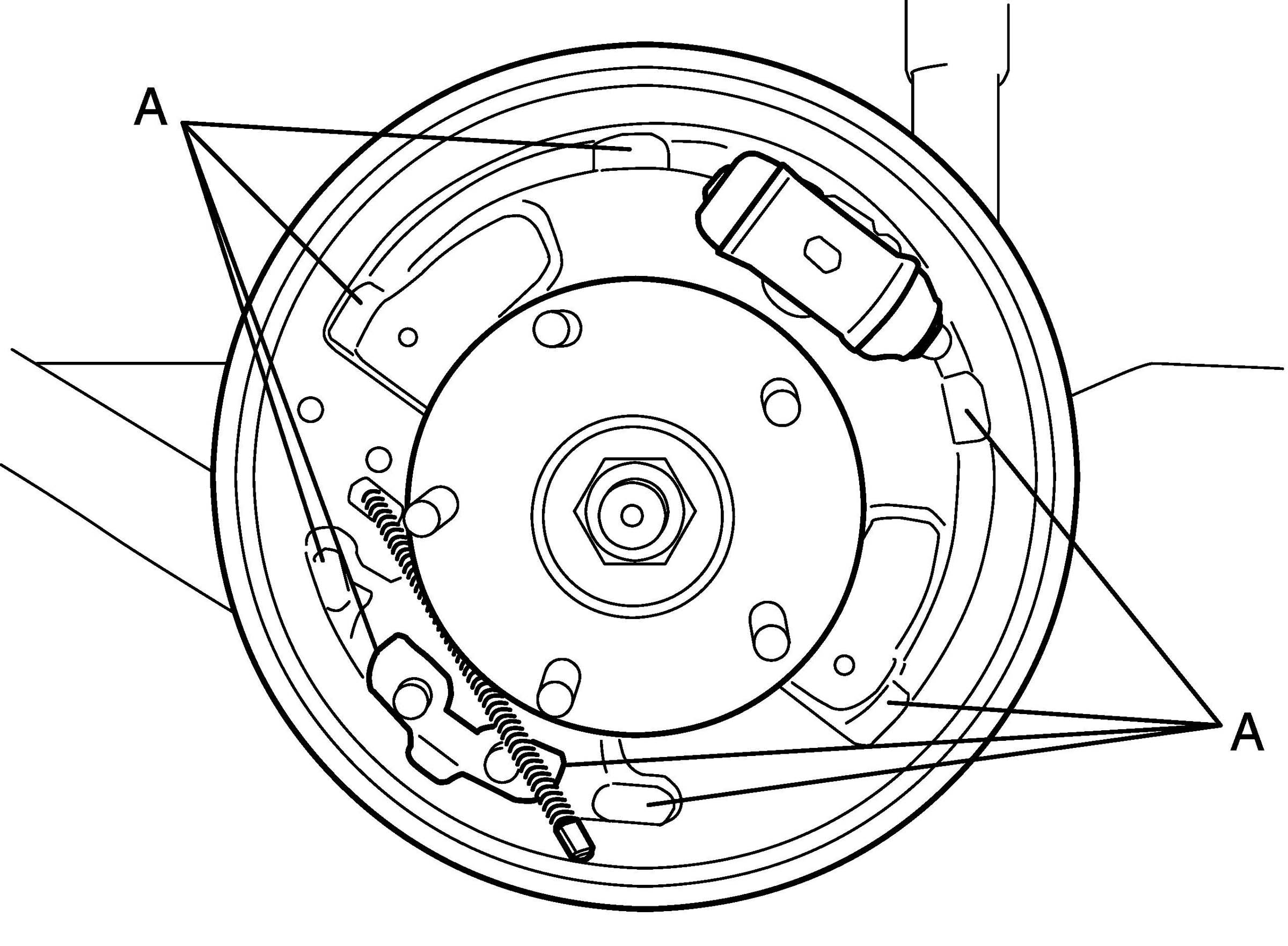 3. Remove return springs, brake shoes and adjuster.