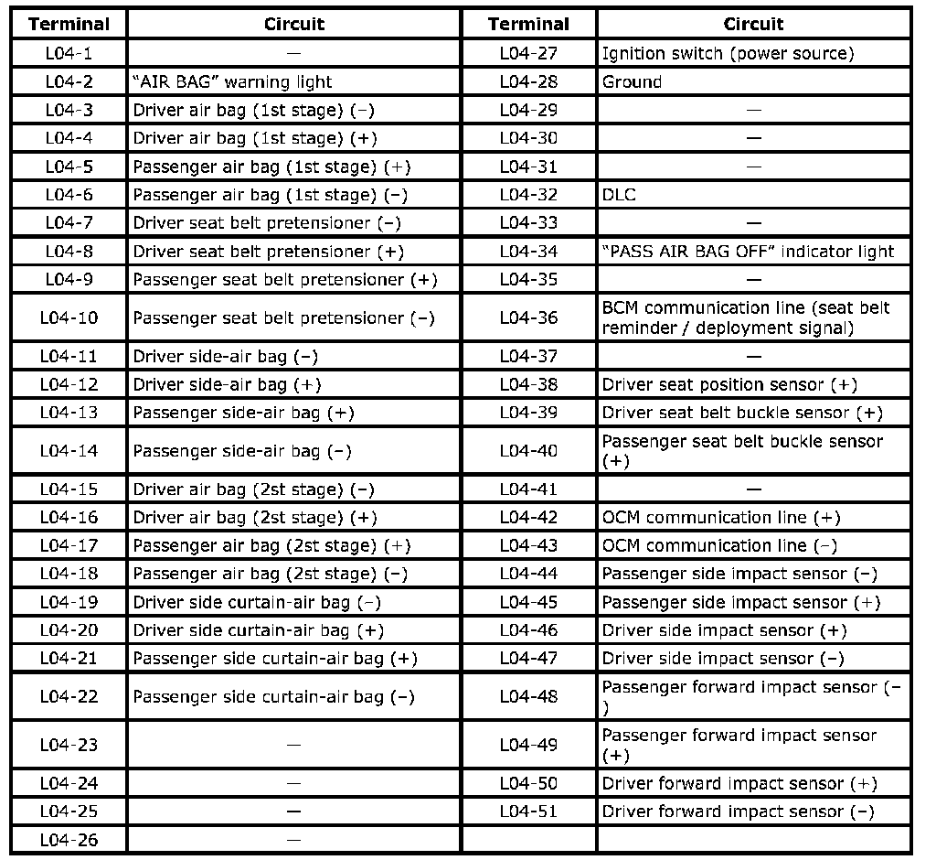 Terminal Arrangement Of SDM (Viewed From Harness Side):