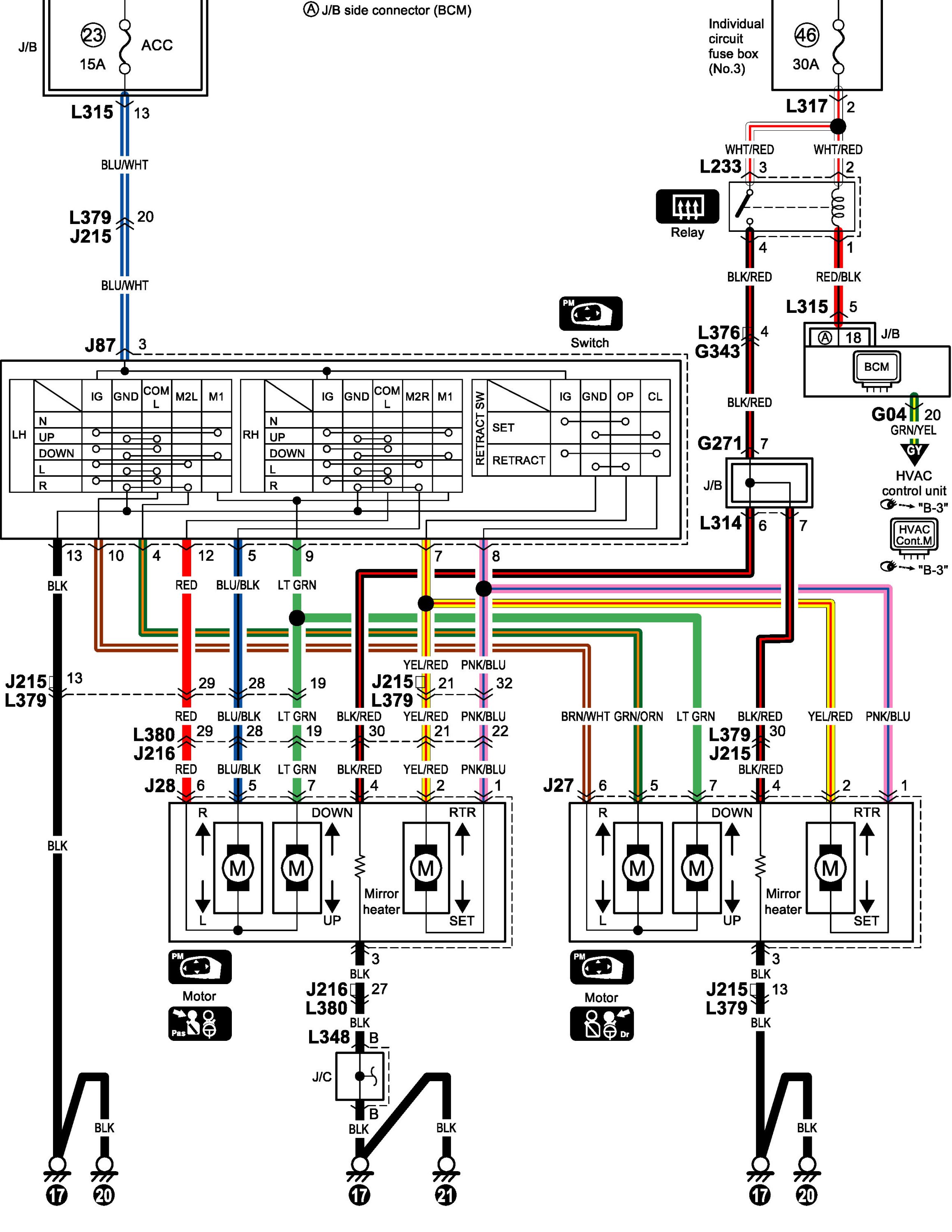 Power Mirror Circuit Diagram (Sedan)