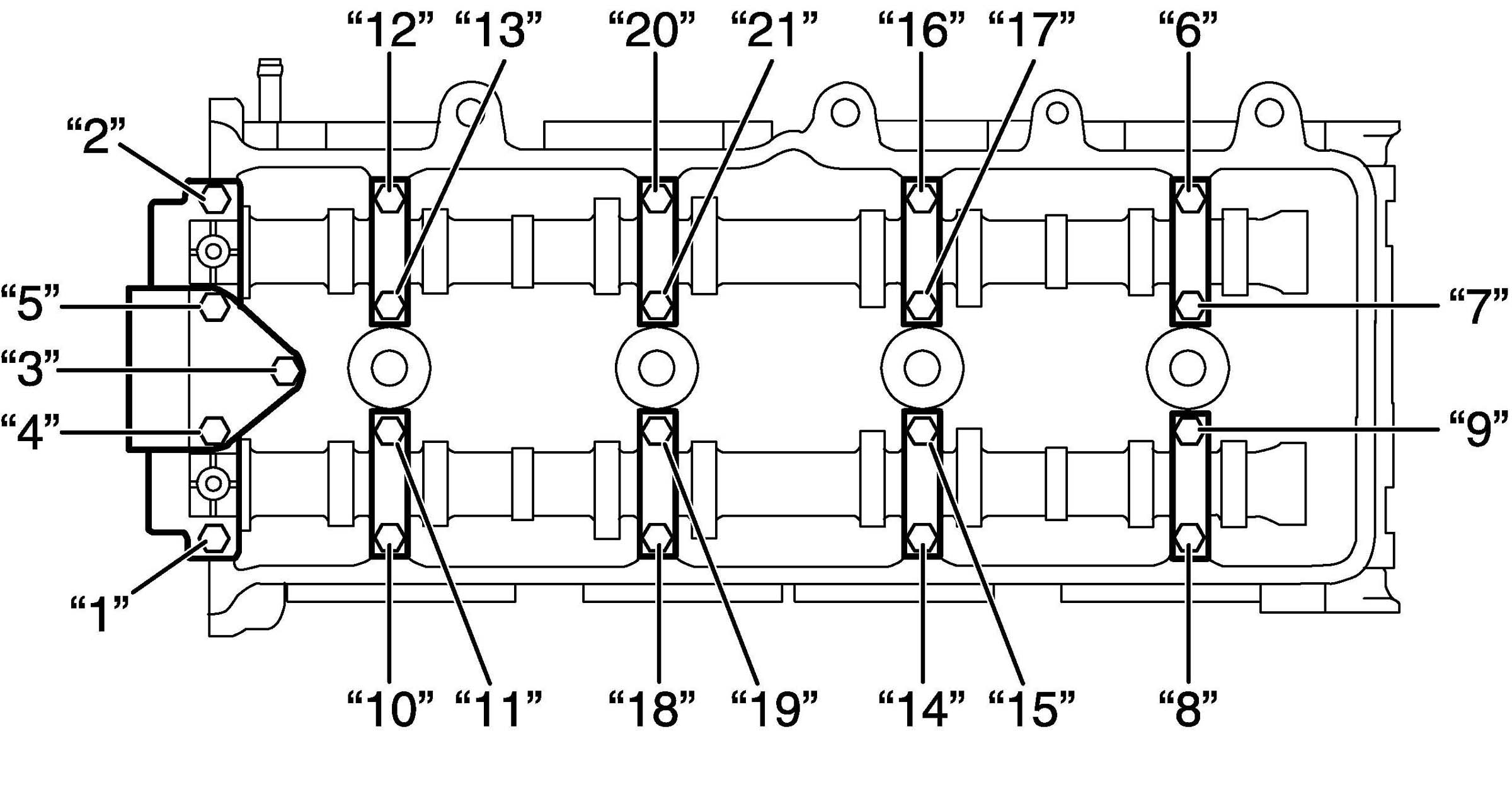 2. Loosen camshaft housing bolts in such order as indicated in figure and remove them.