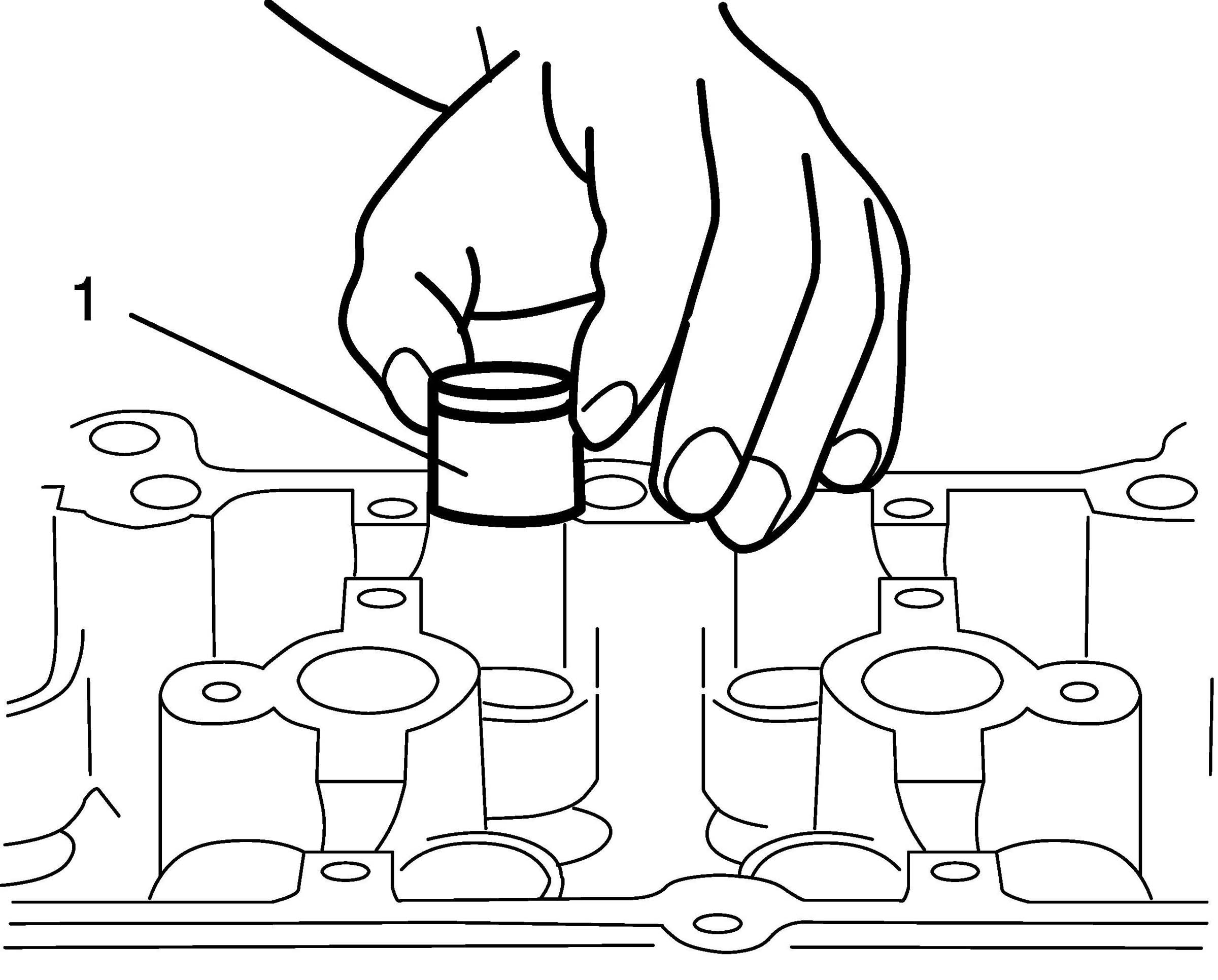 1. Apply engine oil around tappet (1) and shim, and then install tappets with shims to cylinder head.