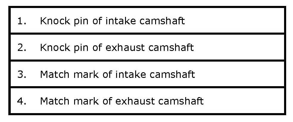 Apply oil to sliding surface of each camshaft and camshaft journal then install them by aligning match marks on cylinder head and camshafts as shown in figure.