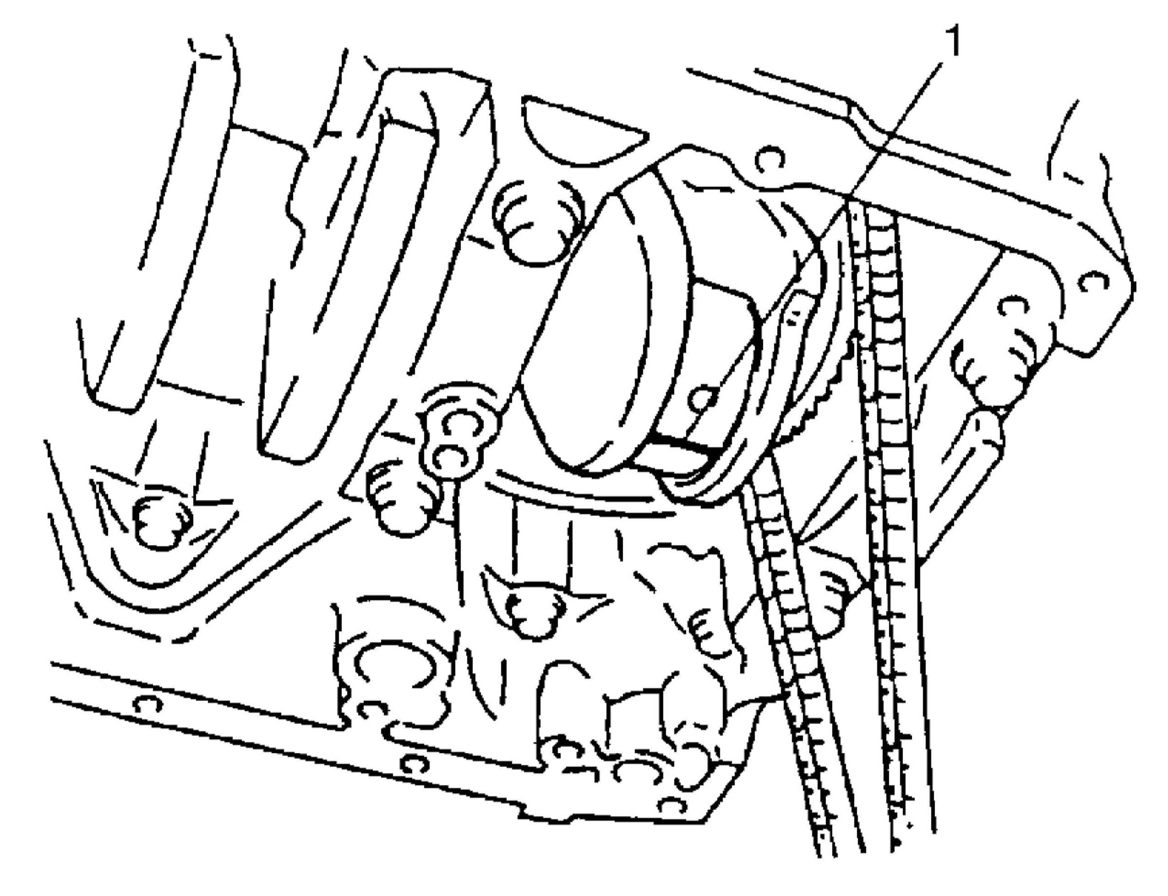 c. Place a piece of gauging plastic (1) to full width of crank pin as contacted by bearing (parallel to crankshaft), avoiding oil hole.