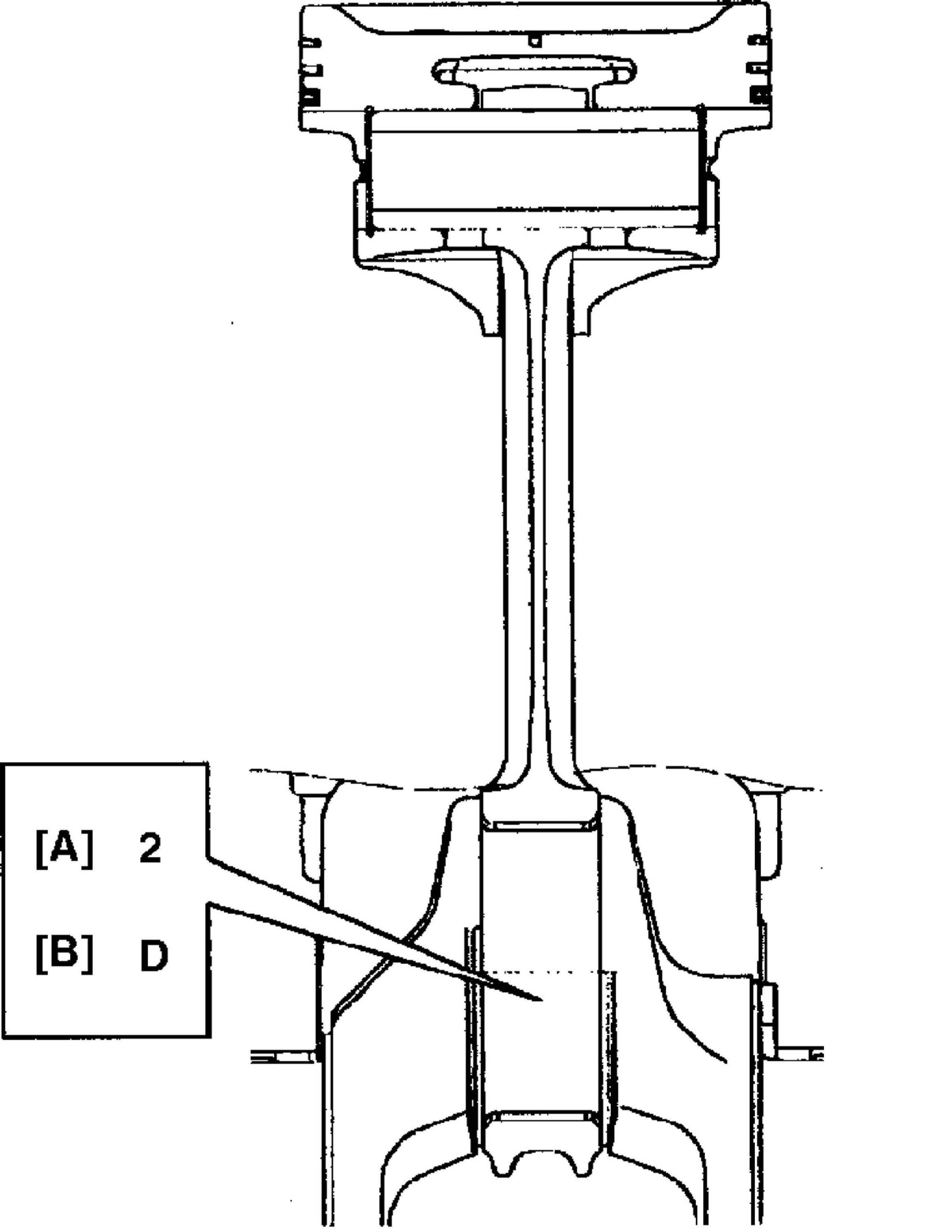 For example, if number stamped on connecting rod and its cap is "1" and alphabet stamped on crank web No. 3 cylinder is "B", install a new standard bearing painted in "Black" to its connecting rod big-end inside.