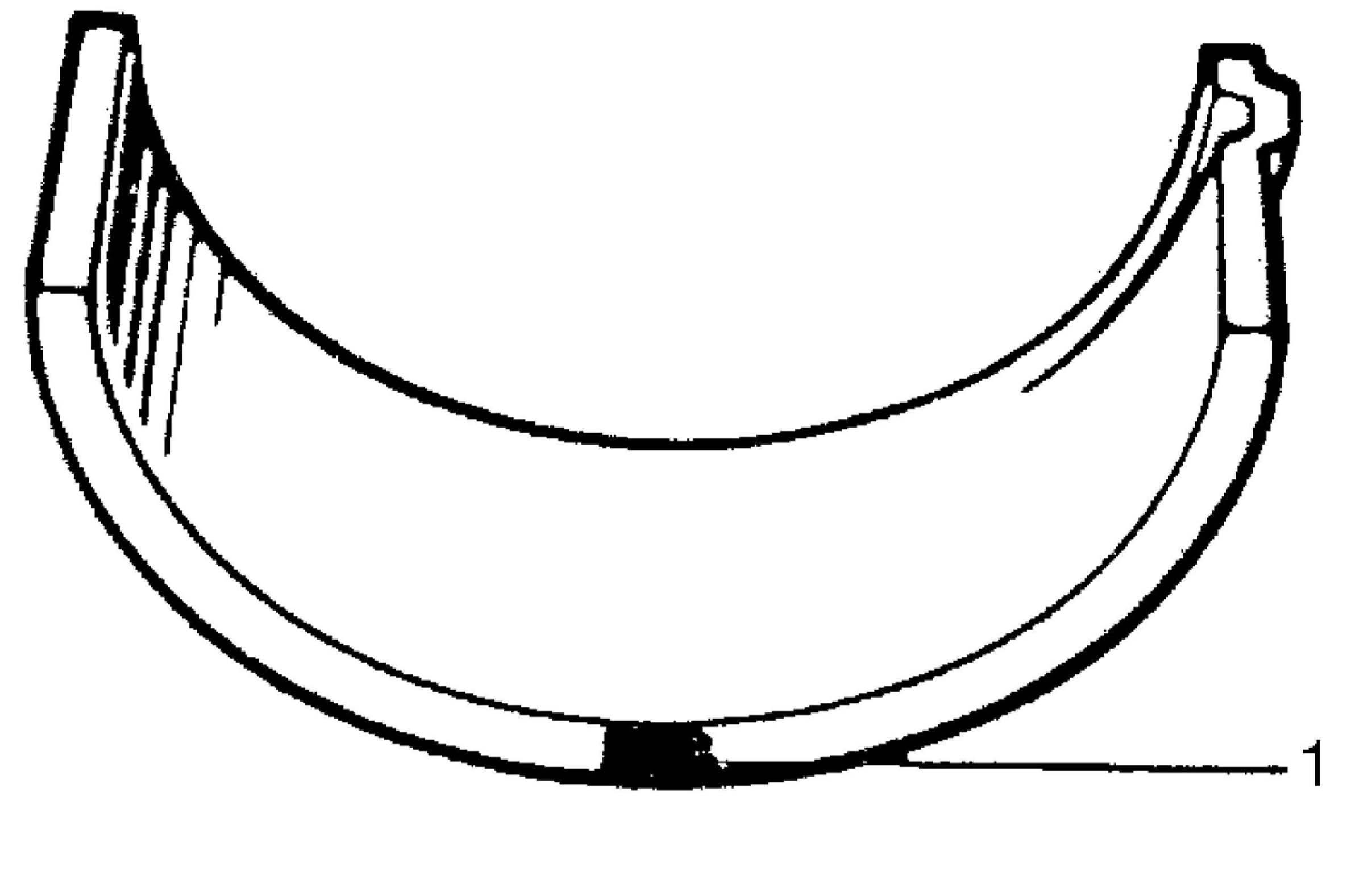 Two kinds of connecting rod bearings are available; standard size bearing and 0.25 mm (0.0098 in.) undersize bearing. For identification of undersize bearing, it is painted red (1) at the position as indicated in the figure, undersize bearing thickness is 1.605 - 1.615 mm (0.0632 0.0635 in.) at the center of it.