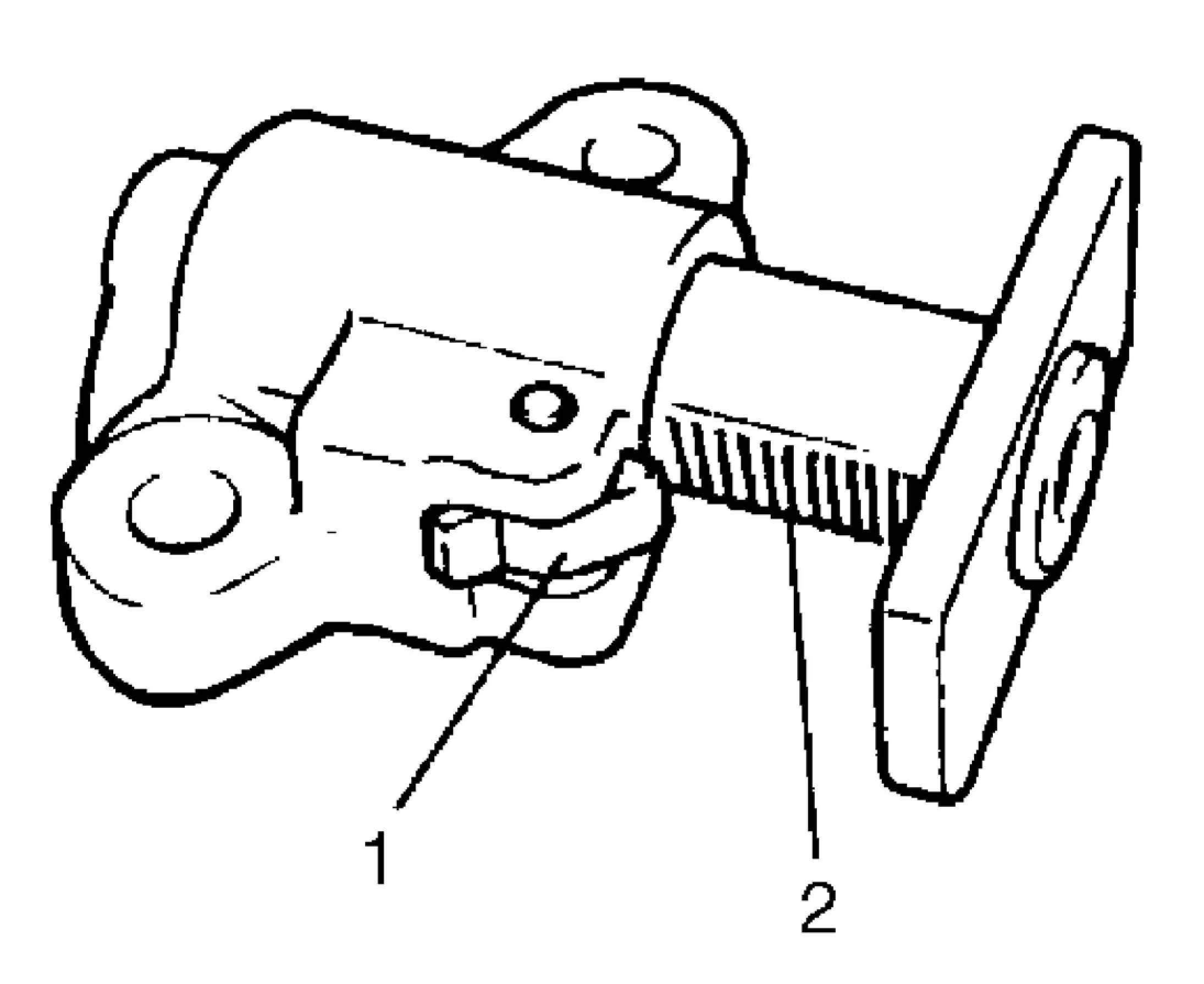 Check that latch (1) and tooth surface (2) are free from damage and latch functions properly.