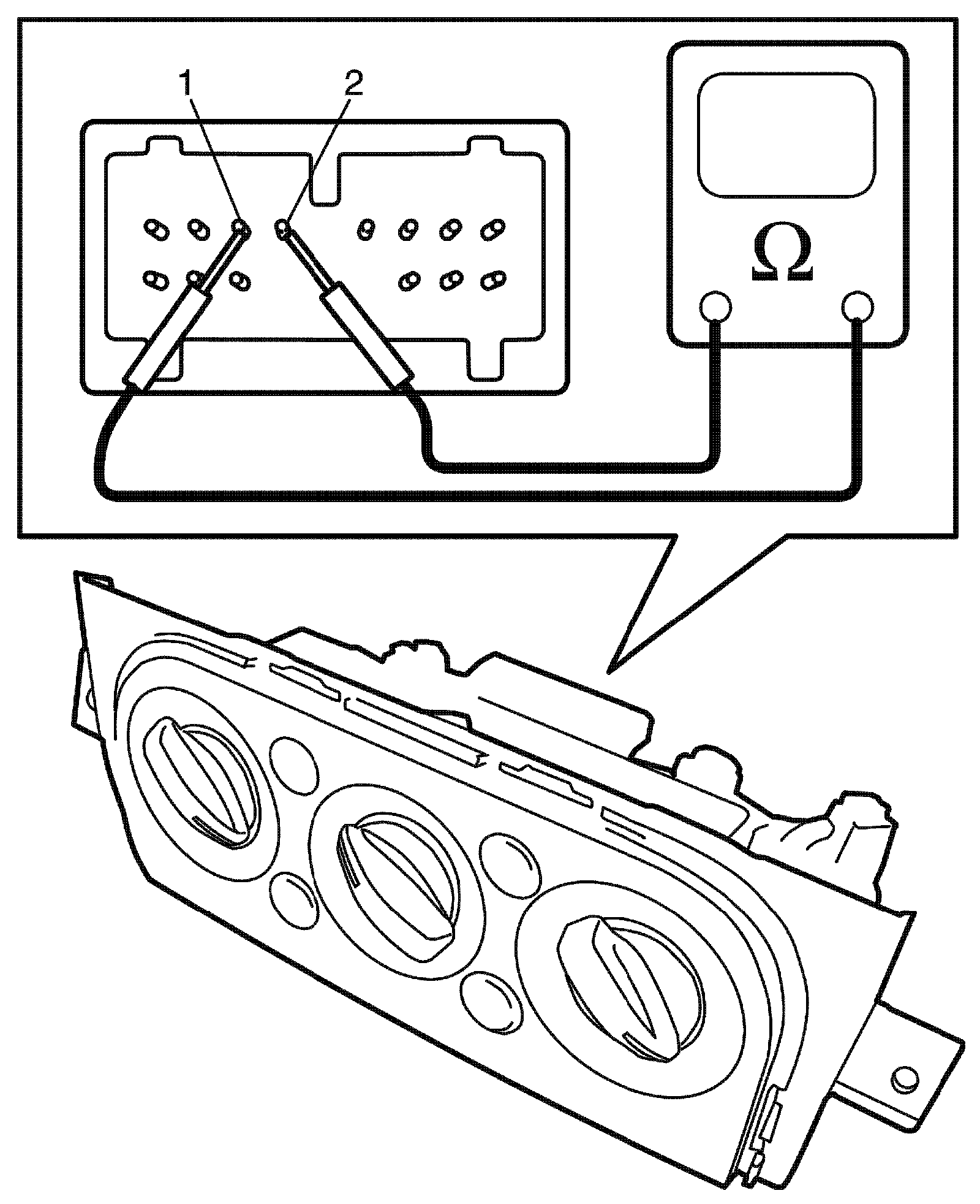 ^ Check that there is no continuity between terminal (1) and terminal (2) when air intake selector is at "REC" position.