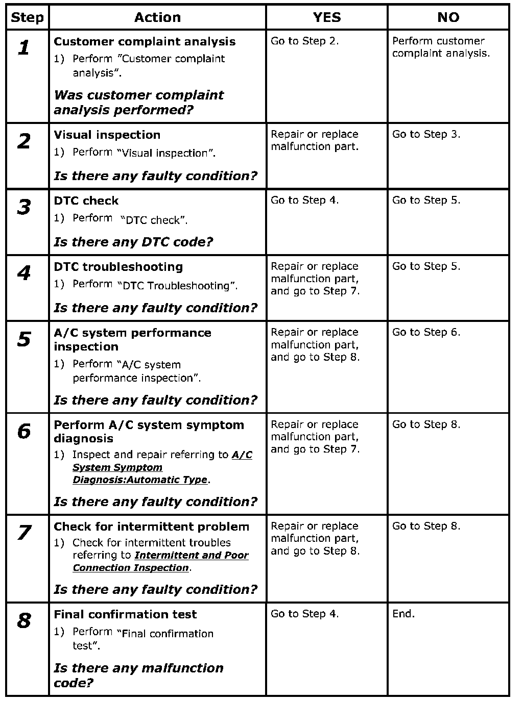 Step 6. A/C system symptom diagnosis