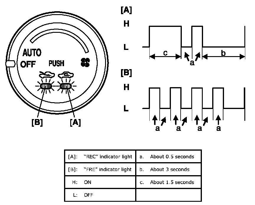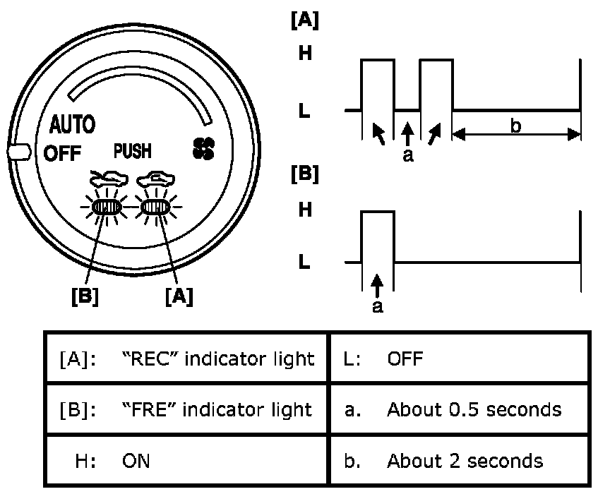 5. Read flashing pattern of "FRE" (6) and "REC" (7) indicator lights which represents DTC and write it down.